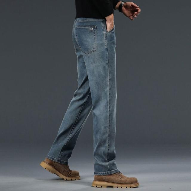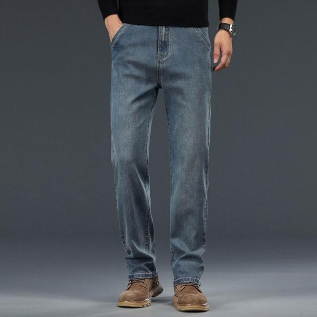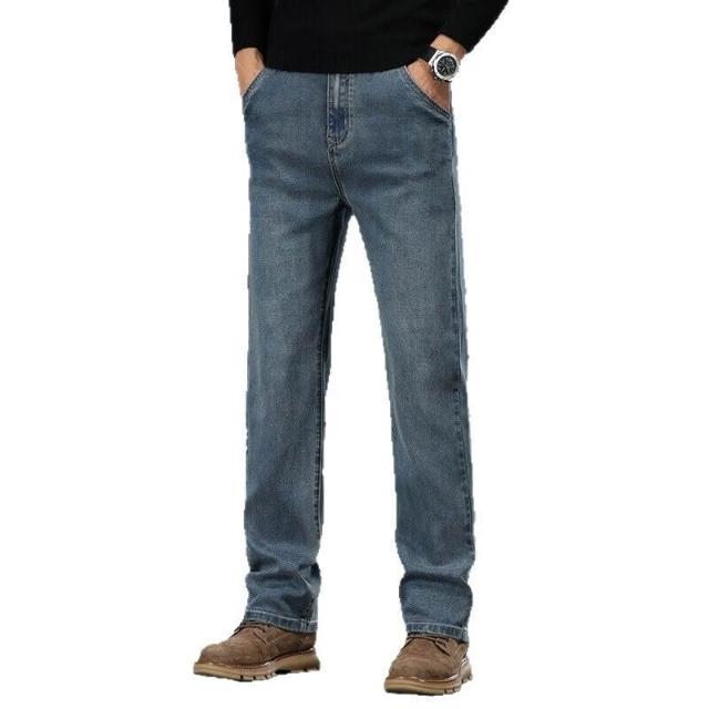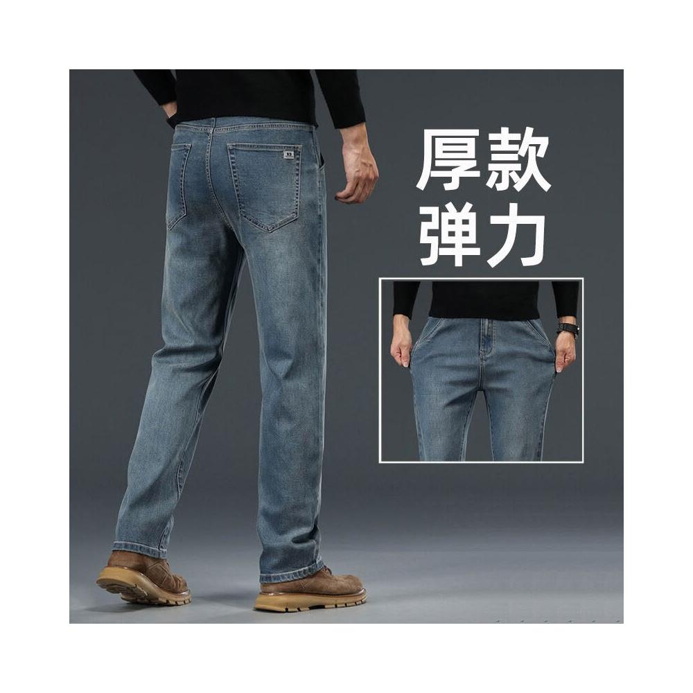 拾光衣櫥 厚款直筒男士牛仔褲秋冬季寬松大碼彈力休閑長褲水洗耐穿送爸爸