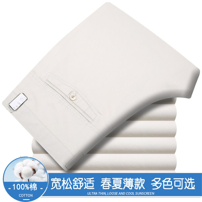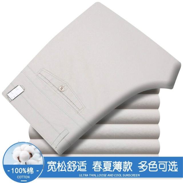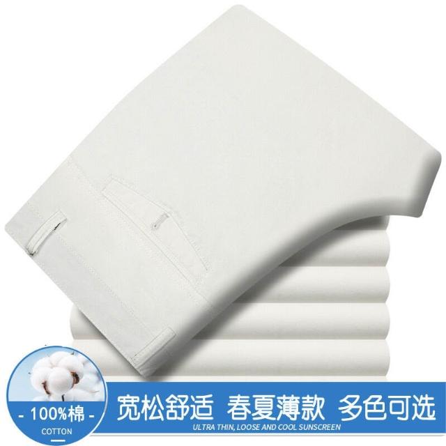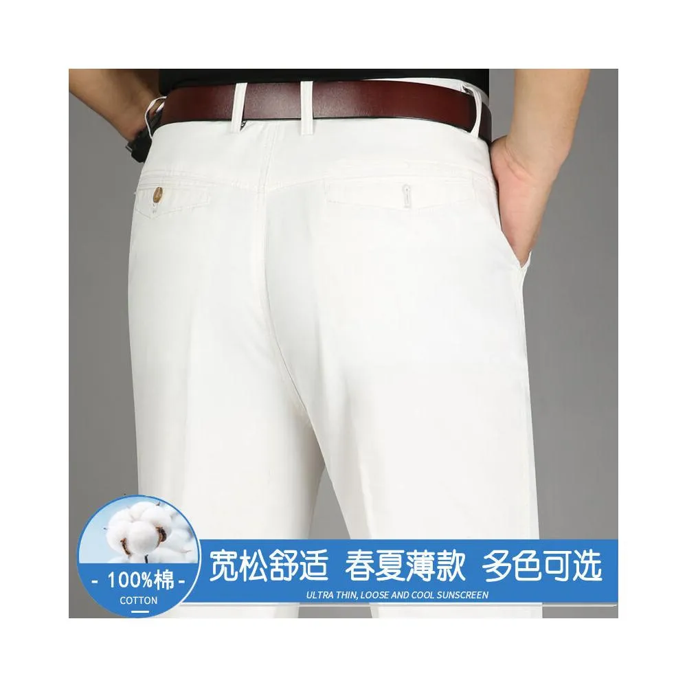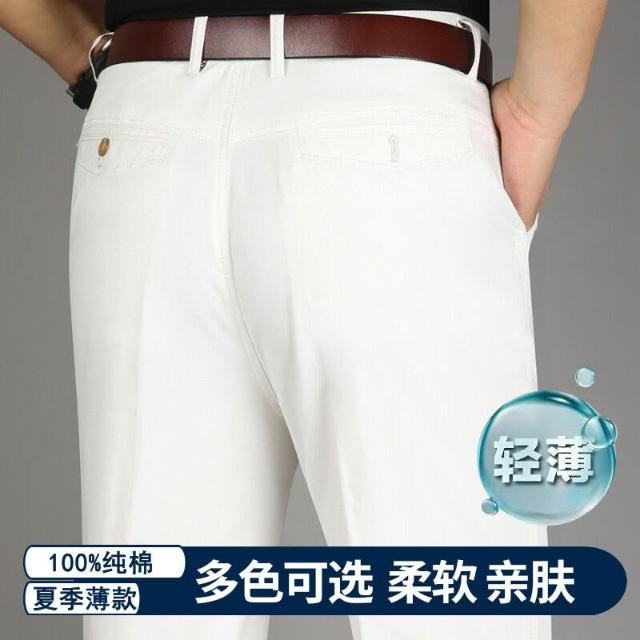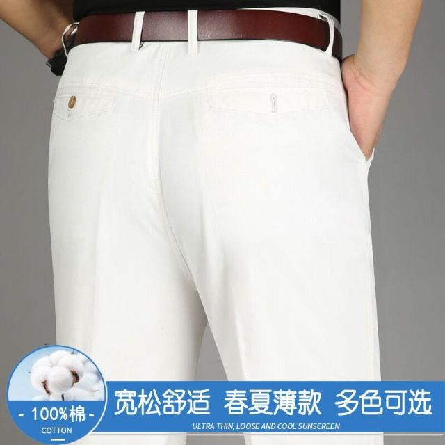 全場免運 春夏薄款純棉休閑褲男高腰寬松中年男褲純白爸爸直筒商務休閑長褲