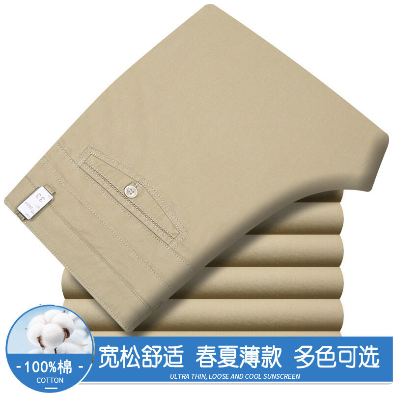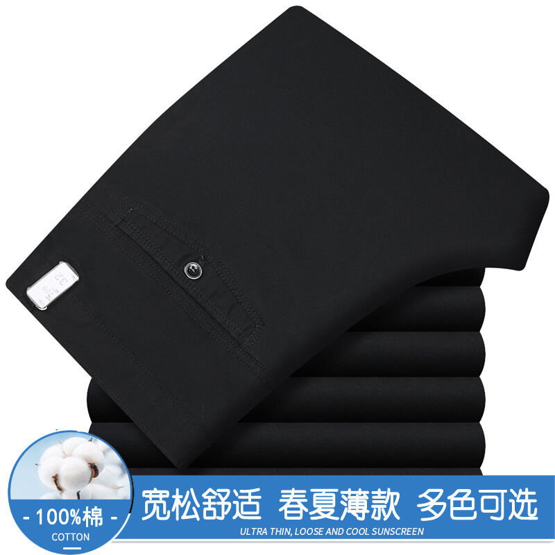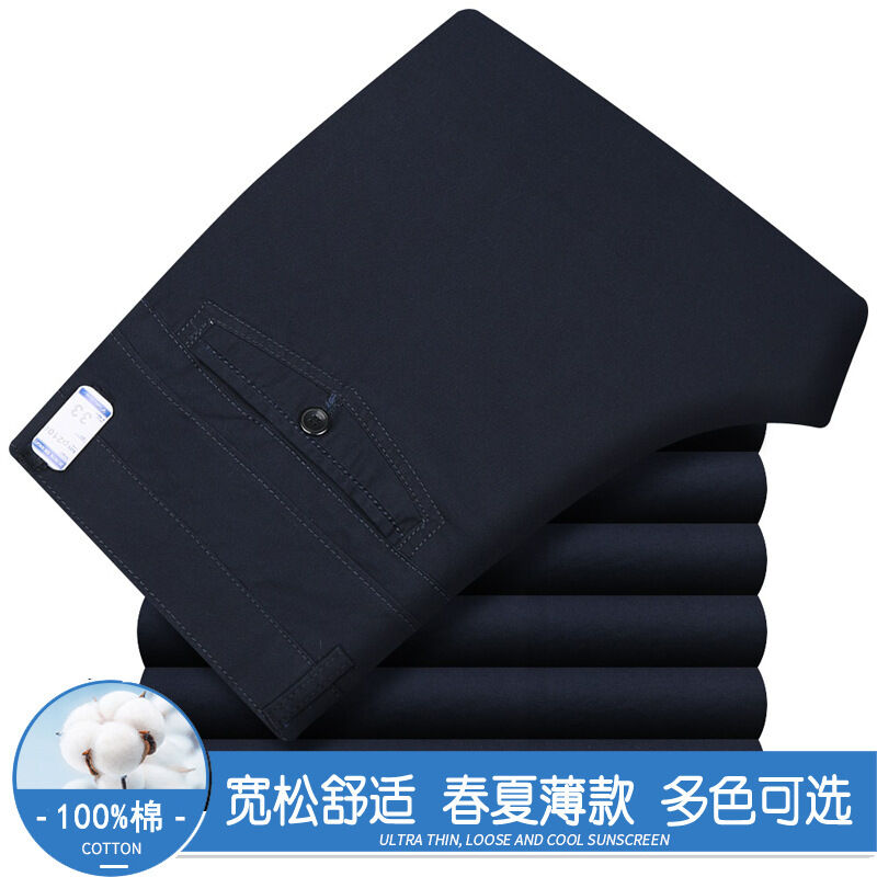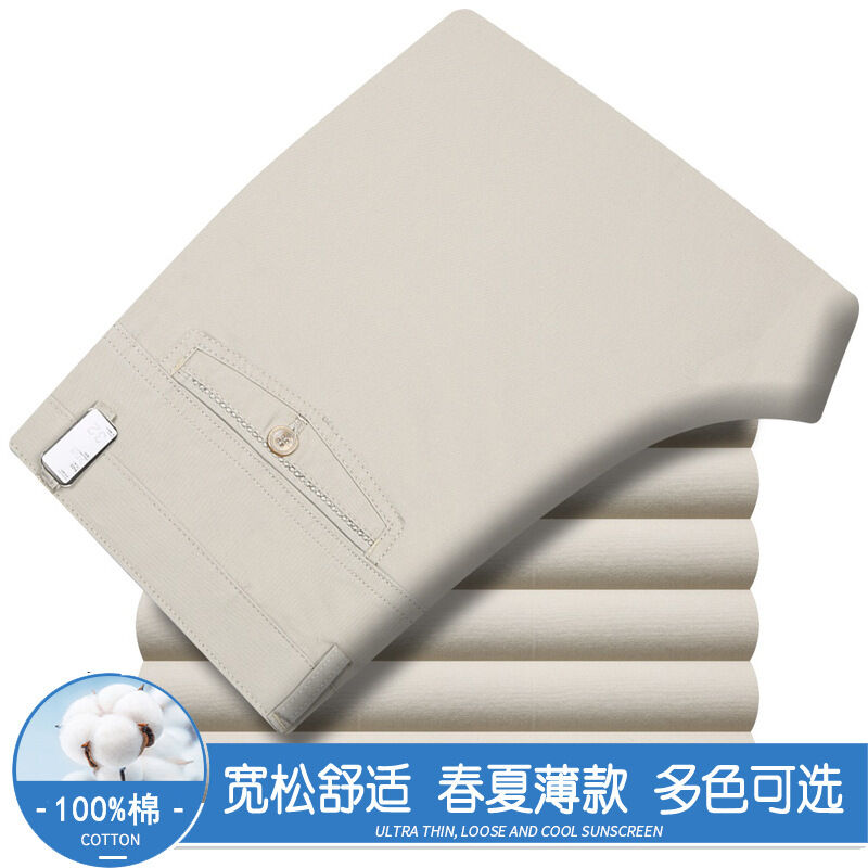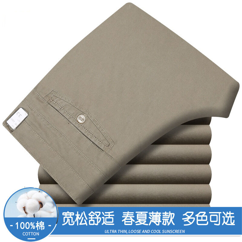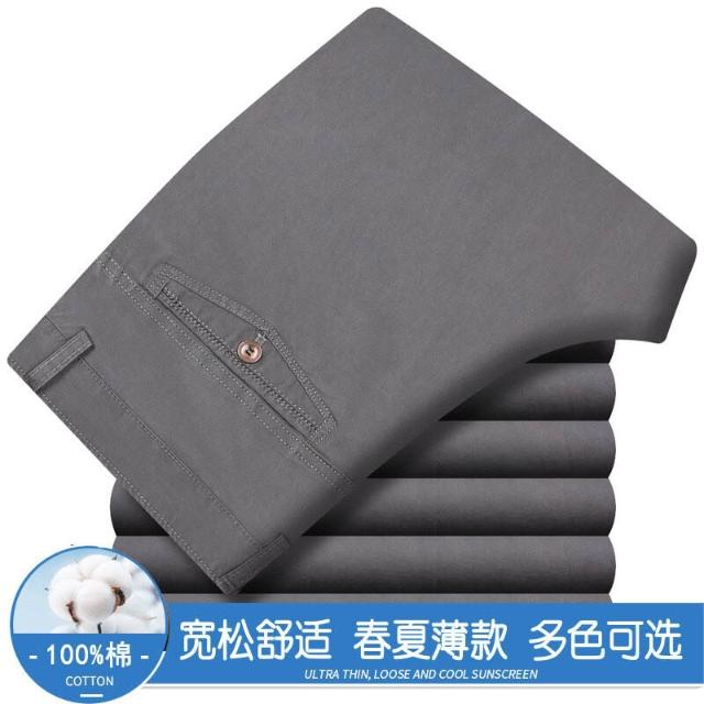 全場免運 春夏薄款純棉休閑褲男高腰寬松中年男褲純白爸爸直筒商務休閑長褲
