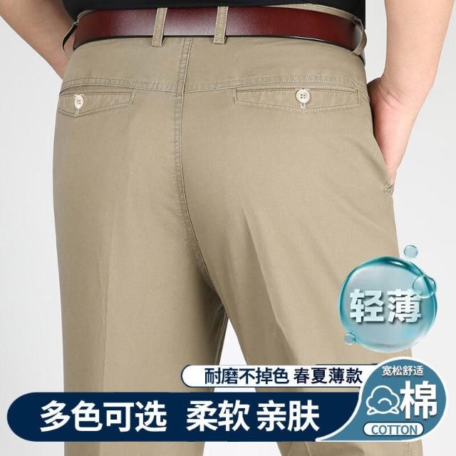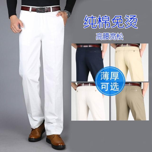 全場免運 春夏薄款純棉休閑褲男高腰寬松中年男褲純白爸爸直筒商務休閑長褲