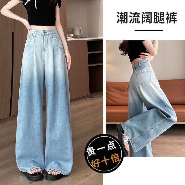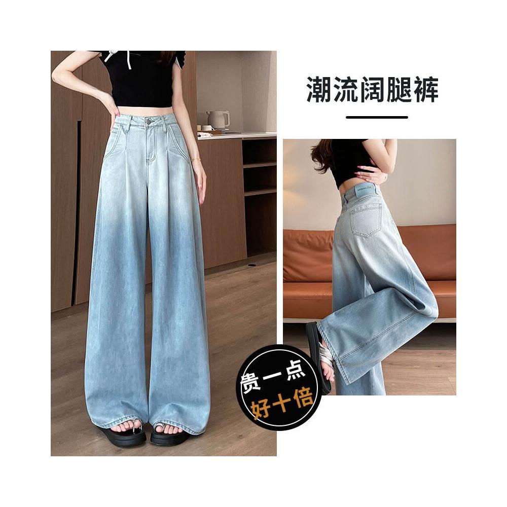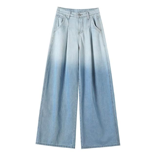 新品熱銷 闊腿牛仔褲女春秋2025年新款顯瘦時尚漸變辣妹寬松復古直筒褲子女