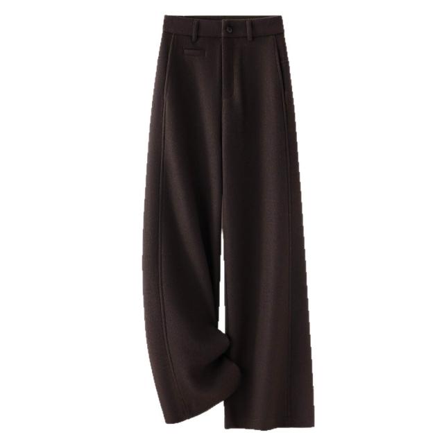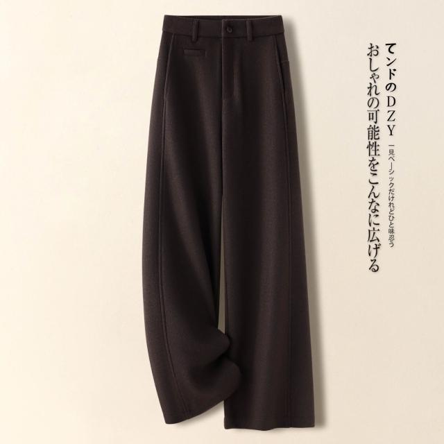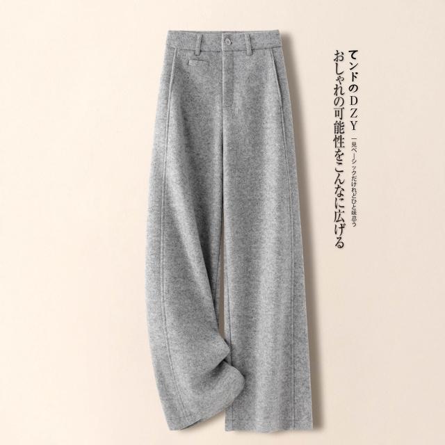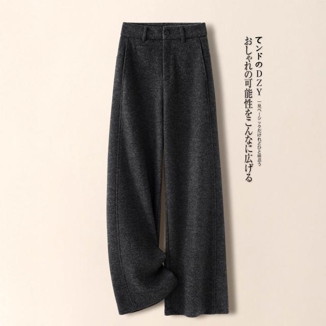 新品熱銷 灰色羊絨直筒休閑褲女秋冬2025新款垂墜感軟糯糯米褲羊毛呢闊腿褲