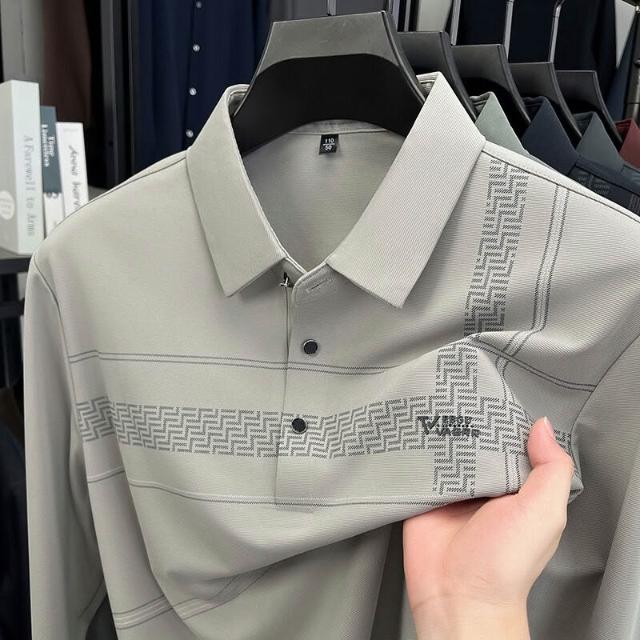 拾光衣櫥 男士長袖中老年翻領打底衫寬松POLO衫爸爸裝t恤上衣休閑舒適男裝