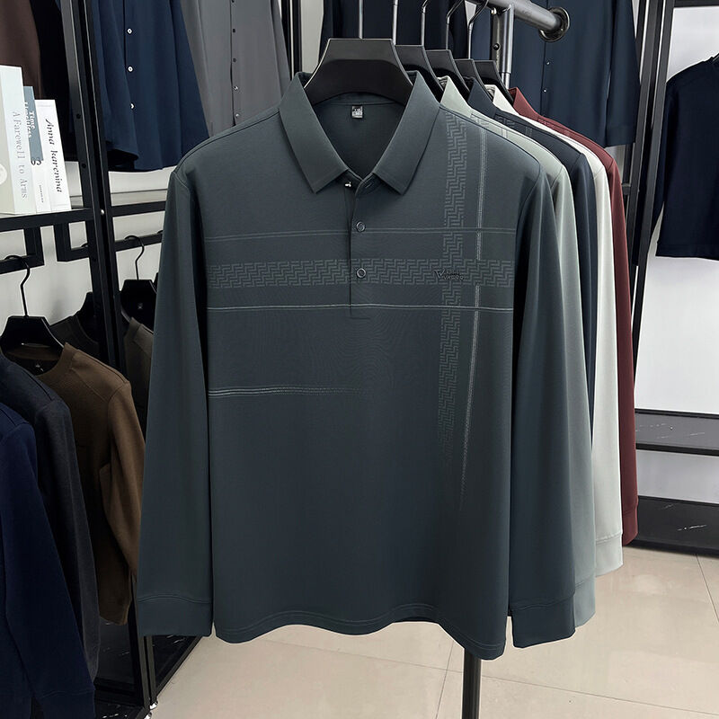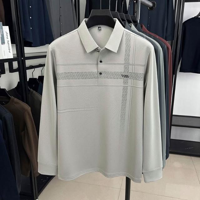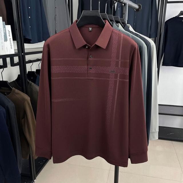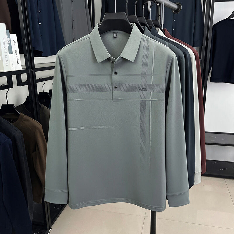 拾光衣櫥 男士長袖中老年翻領打底衫寬松POLO衫爸爸裝t恤上衣休閑舒適男裝