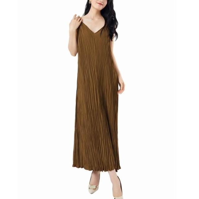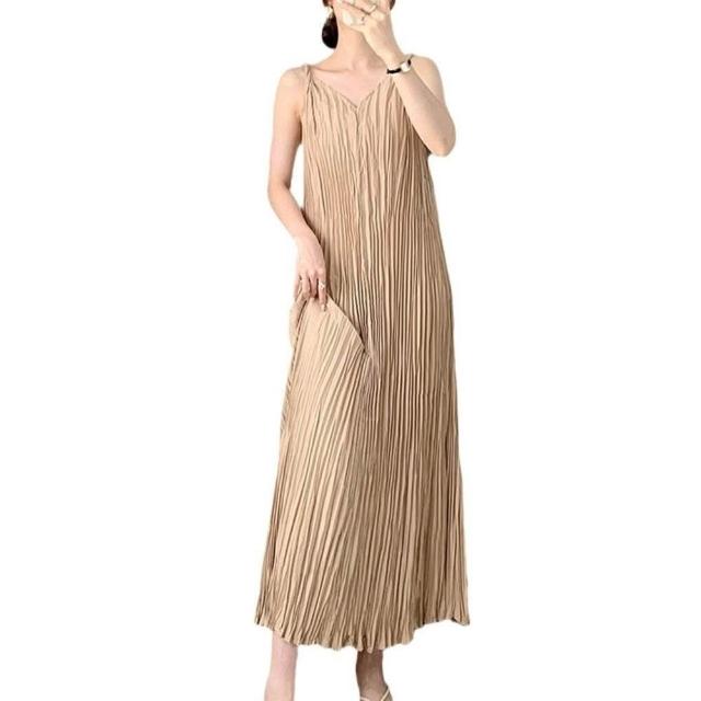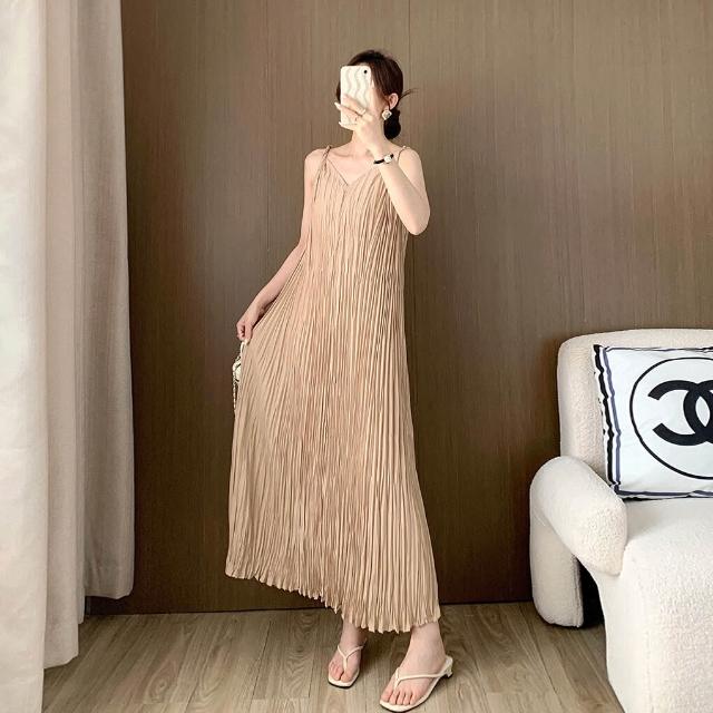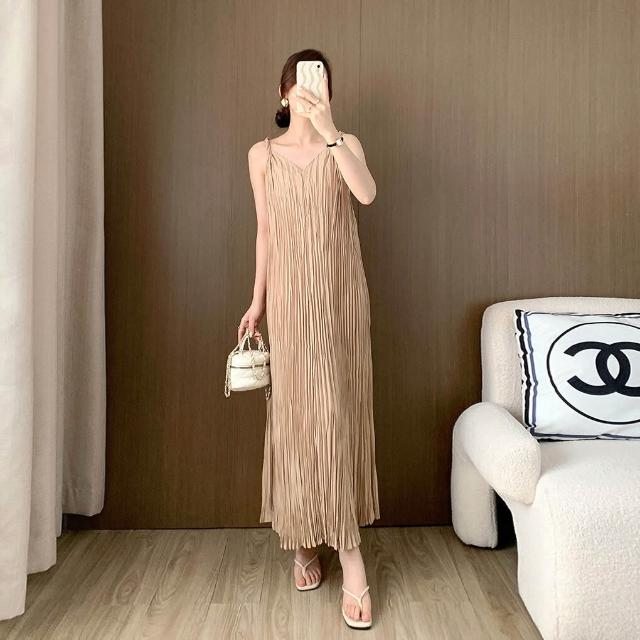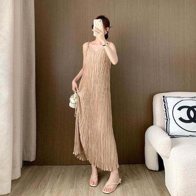 拾光衣櫥 吊帶連衣裙夏女高級感不規則百褶裙氣質新款百搭長裙茶歇法式裙子
