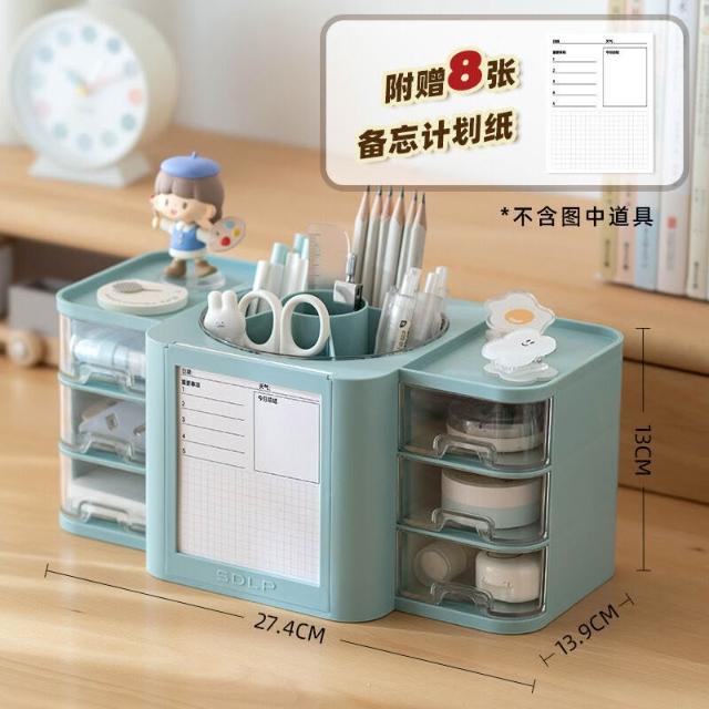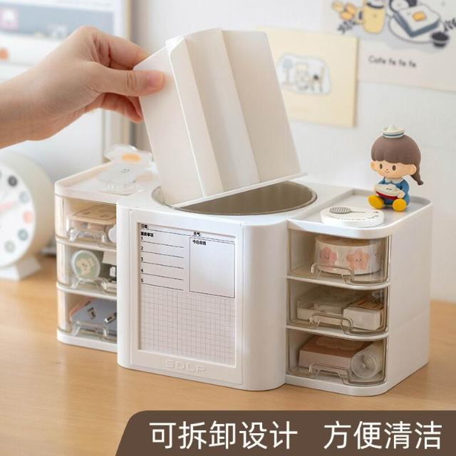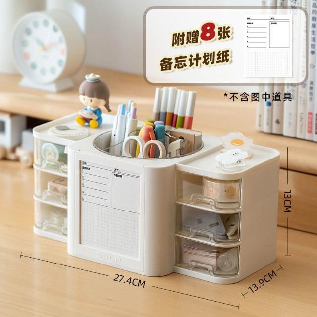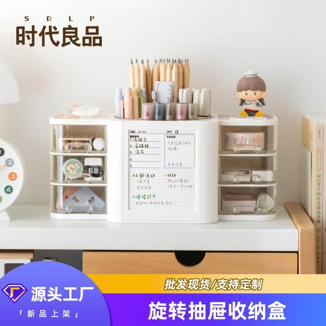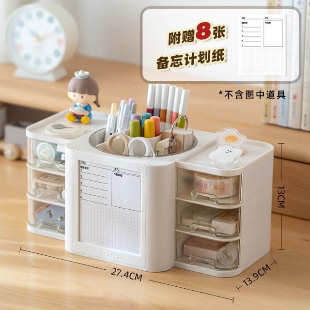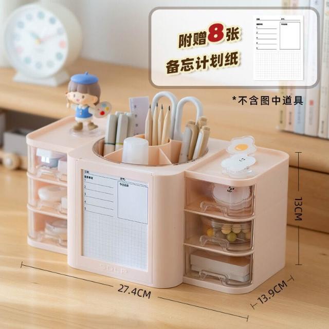 拾光衣櫥 桌面透明抽屜式整理收納盒塑料旋轉筆筒學生計劃帶便簽筆桶展示盒