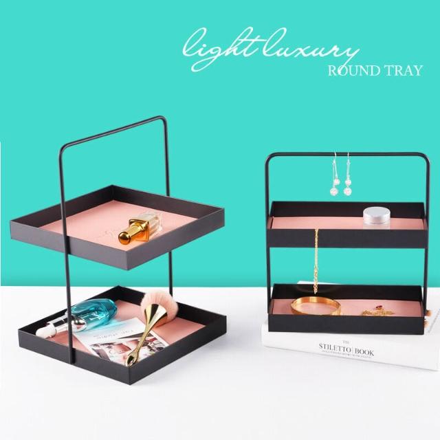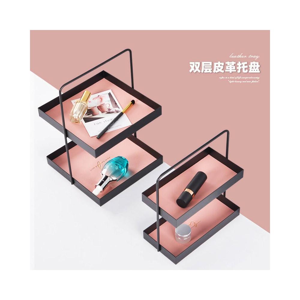 拾光衣櫥 雙層皮革墊金屬收納盤玄關鑰匙置物盤雜物化妝品托盤桌面置物架