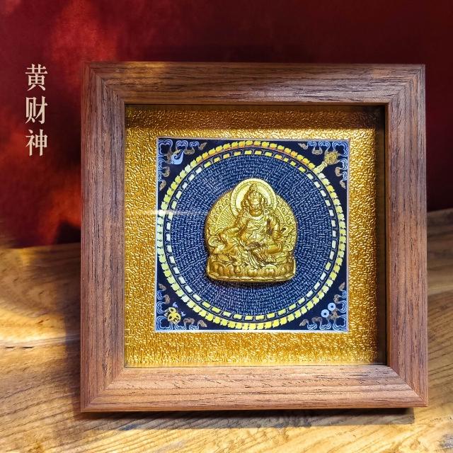 拾光衣櫥 手繪唐卡立體擦擦黃財神紮基拉姆大黑天擺臺裝飾畫擺件本命佛招財