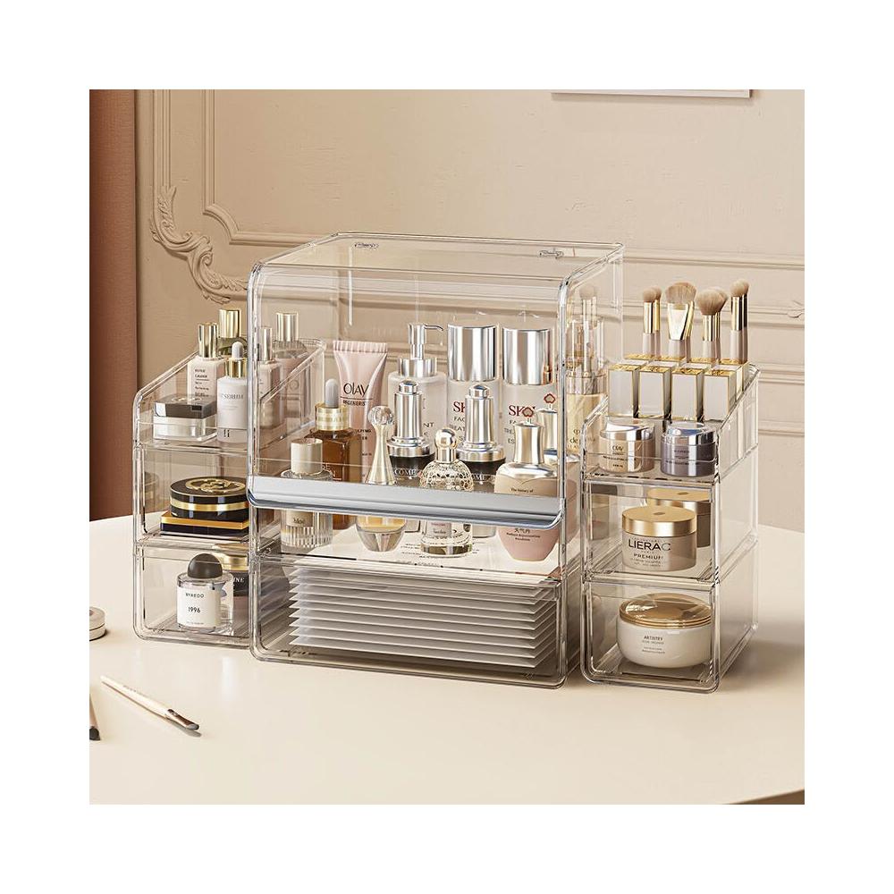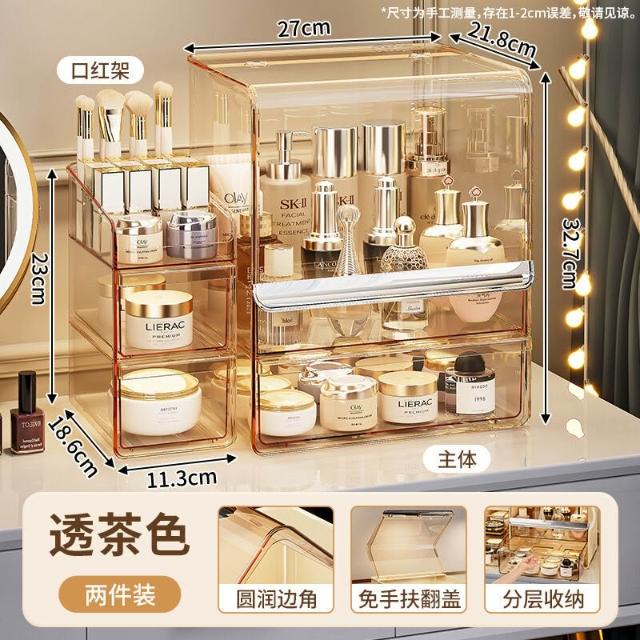拾光衣櫥 亞克力化妝品收納盒桌面防塵梳妝臺置物架護膚品塑料口紅收納架