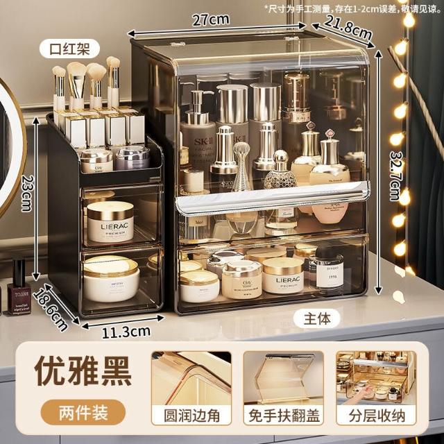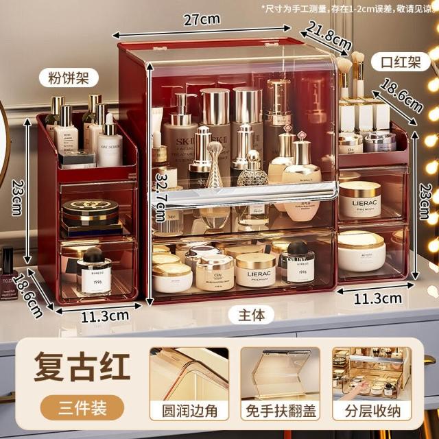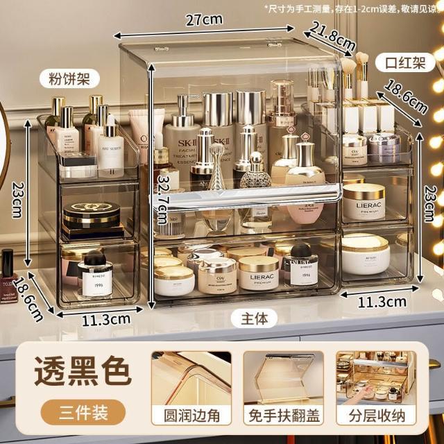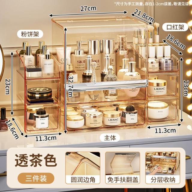 拾光衣櫥 亞克力化妝品收納盒桌面防塵梳妝臺置物架護膚品塑料口紅收納架