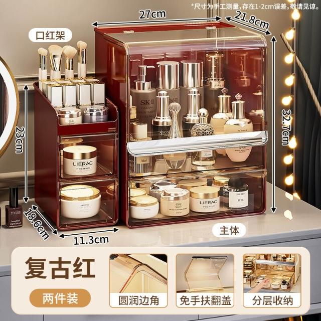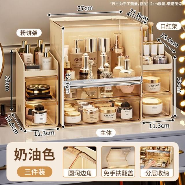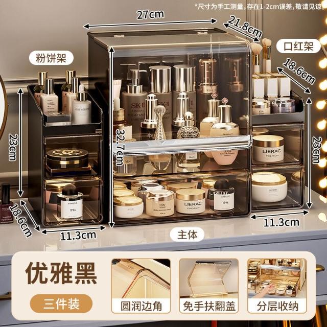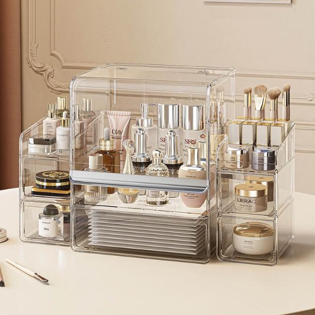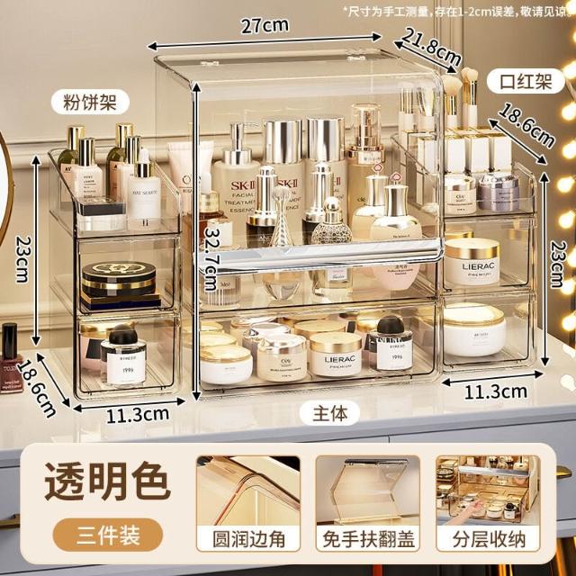 拾光衣櫥 亞克力化妝品收納盒桌面防塵梳妝臺置物架護膚品塑料口紅收納架