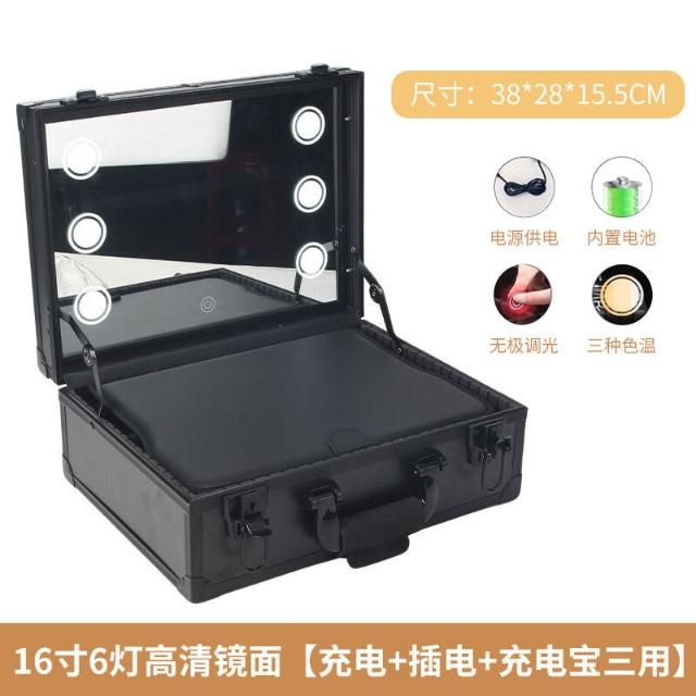 拾光衣櫥 便攜式專業手提帶燈化妝箱 LED 跟妝箱可調光帶鏡多層彩妝收納箱