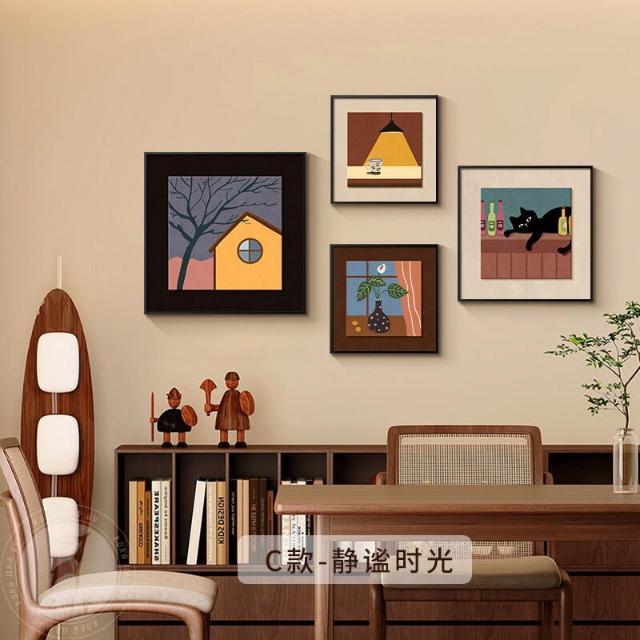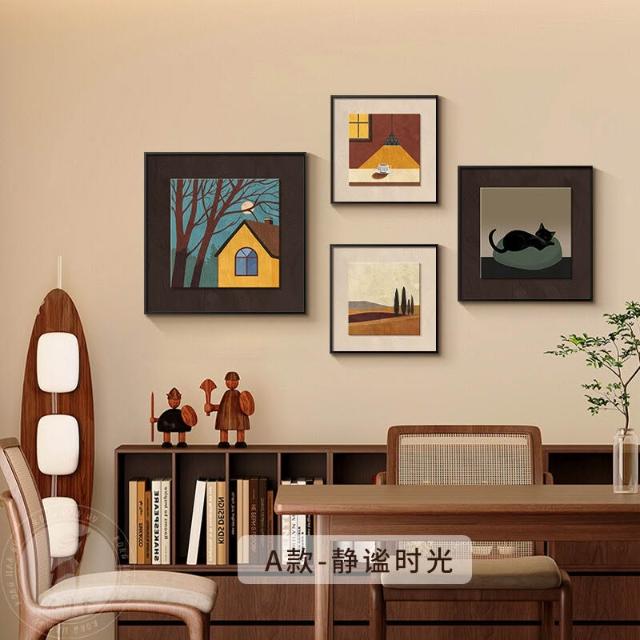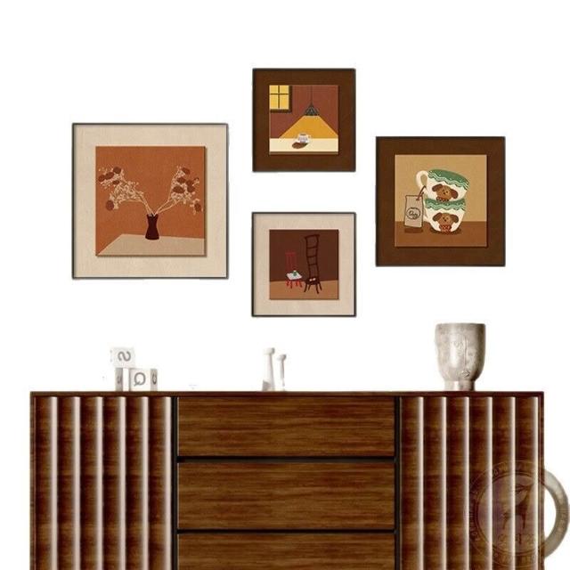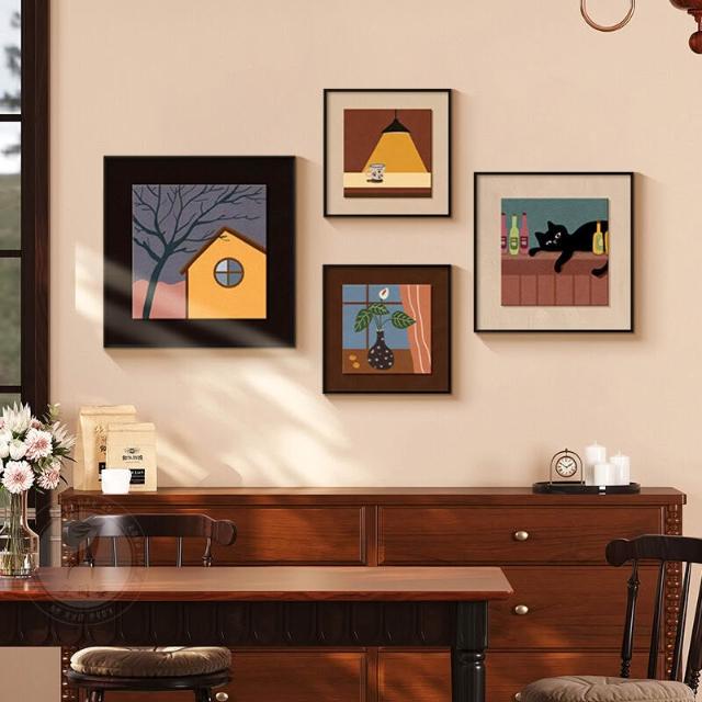 拾光衣櫥 法式中古風餐廳裝飾畫小眾藝術組合壁畫美拉德客廳沙發背景墻掛畫