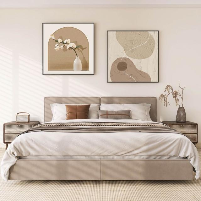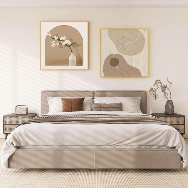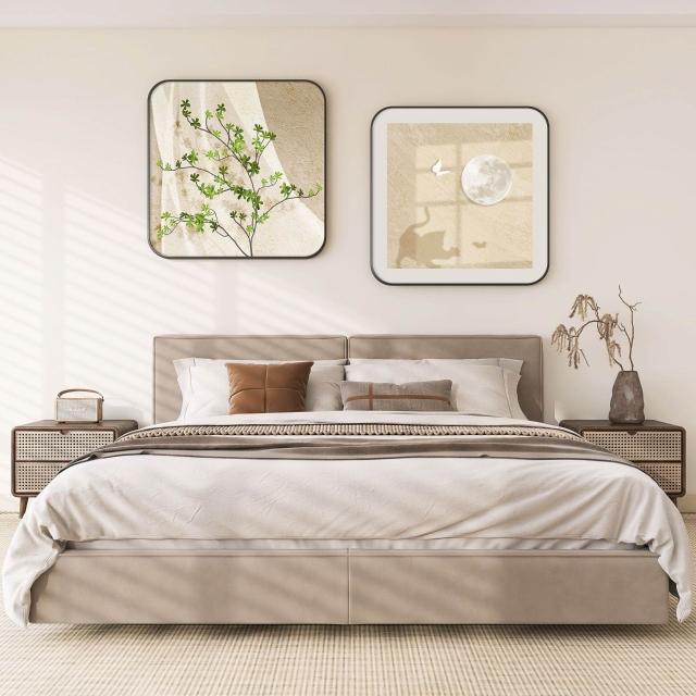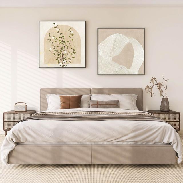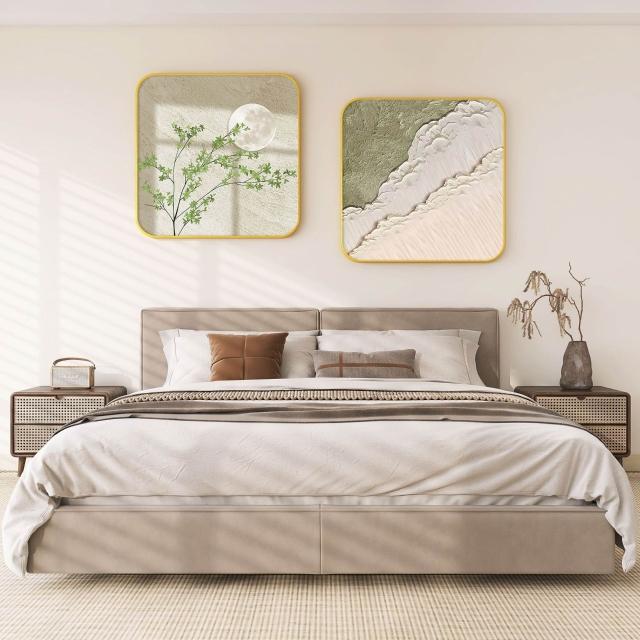 拾光衣櫥 臥室裝飾畫高級感原木風主臥床頭兩聯掛畫侘寂風客廳墻面抽象壁畫