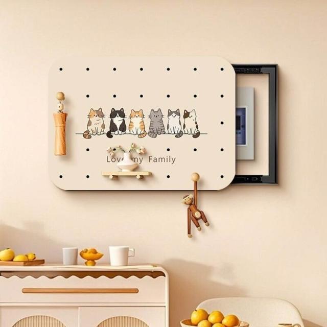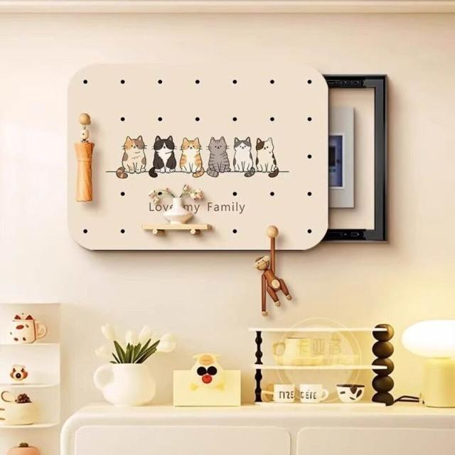 拾光衣櫥 奶油風電表箱洞洞板遮蓋板配電箱裝飾遮擋免打孔置物架源頭工廠