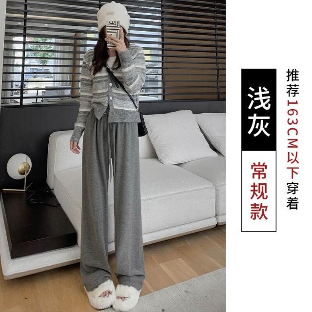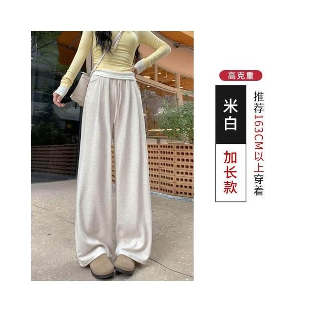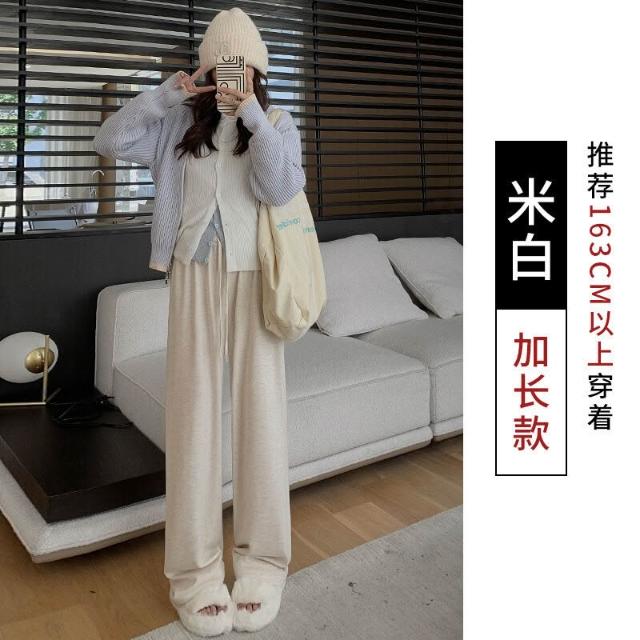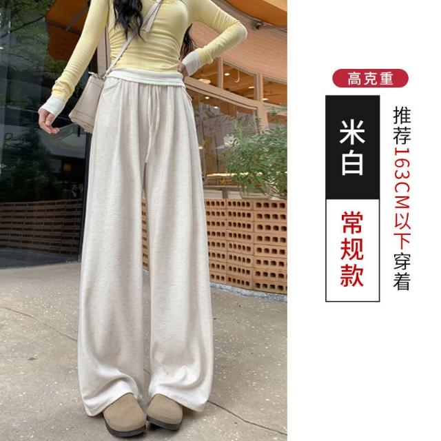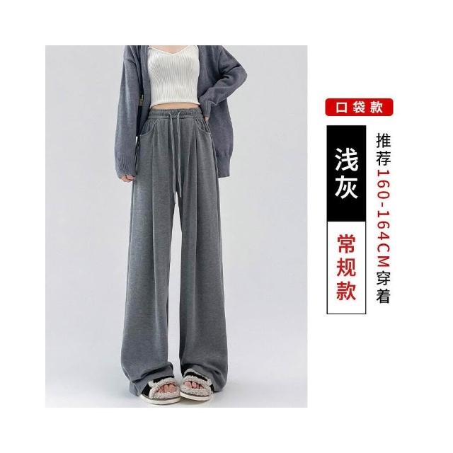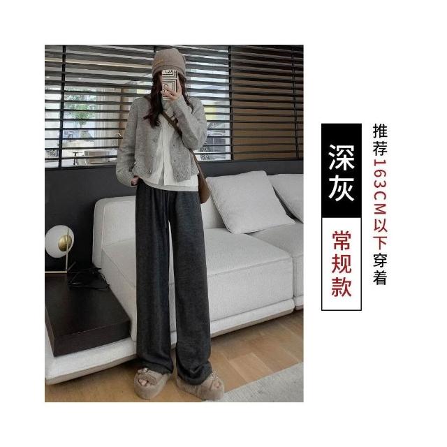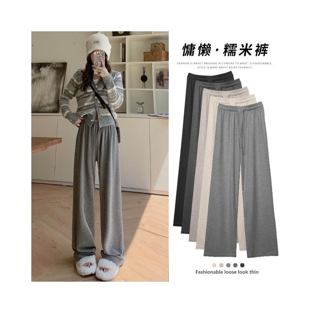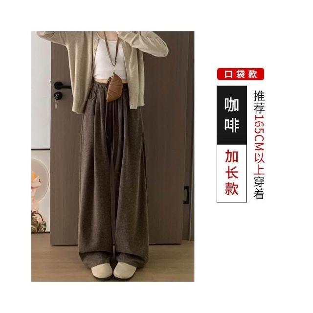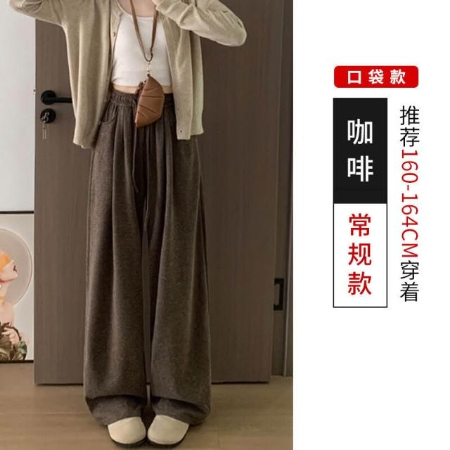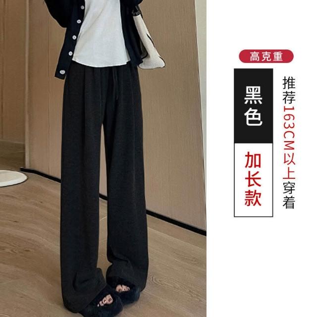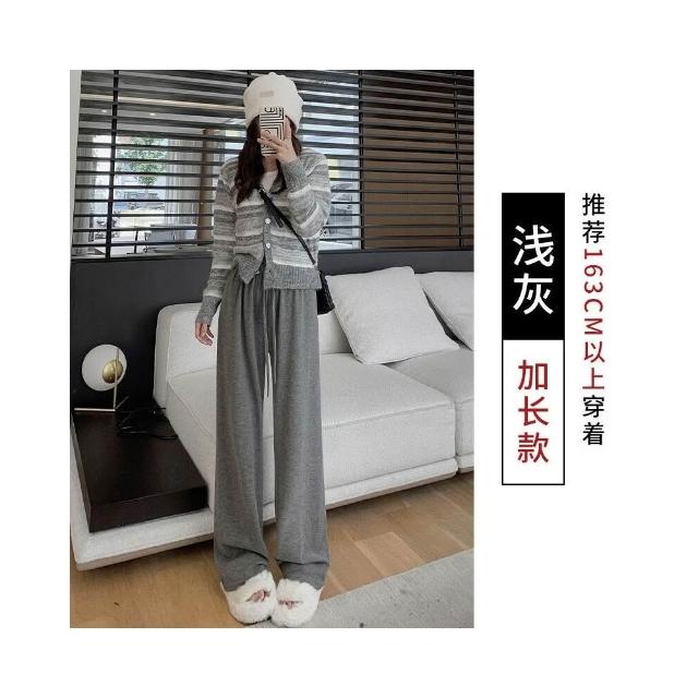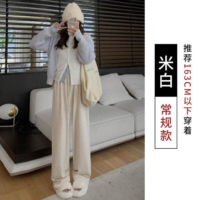 拾光衣櫥 春秋新款針織雲朵糯米褲寬松高腰垂感休閑闊腿褲慵懶窄版拖地褲子