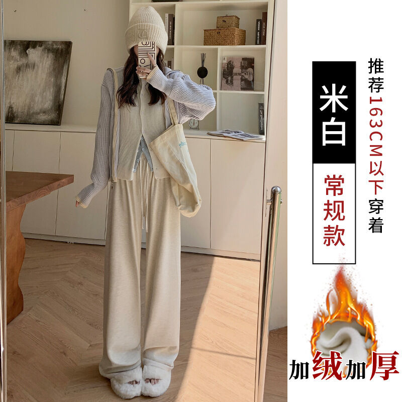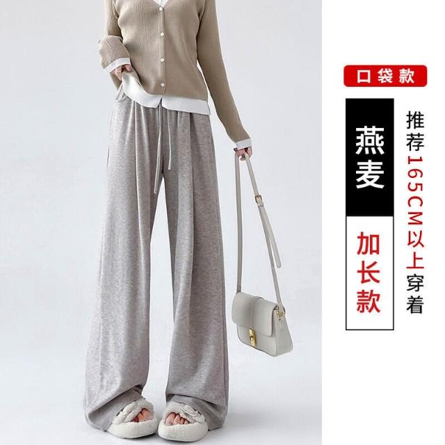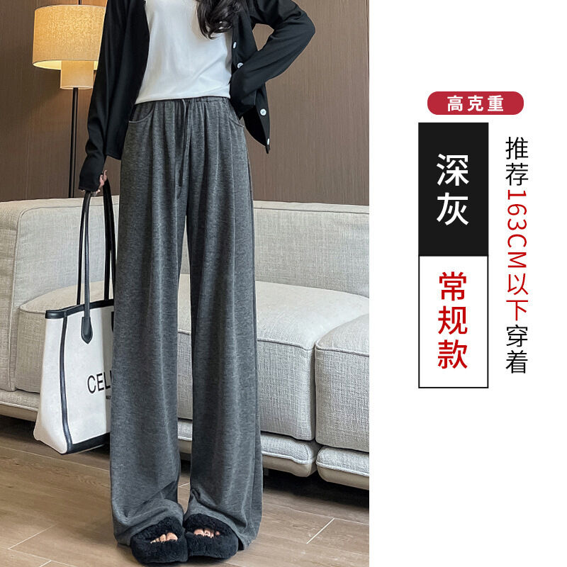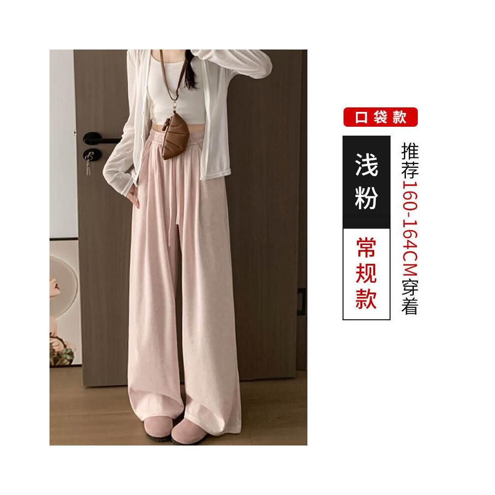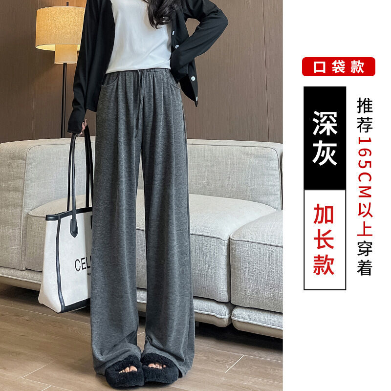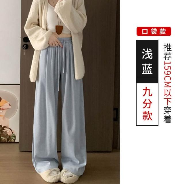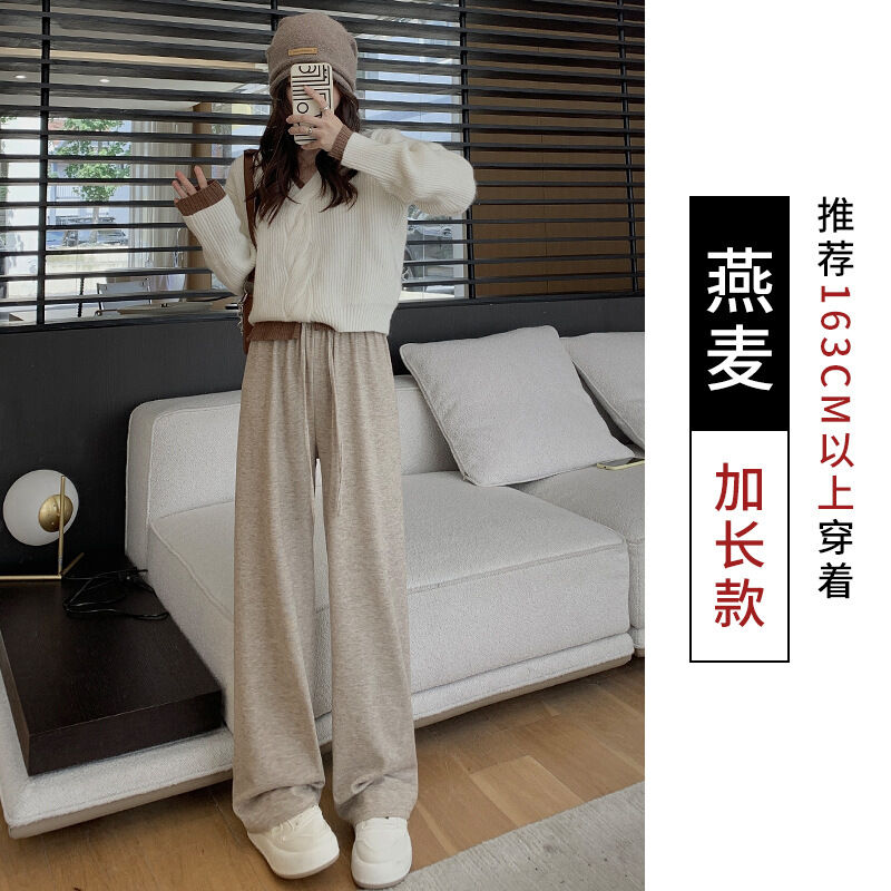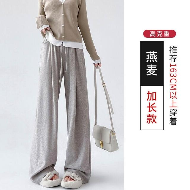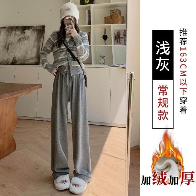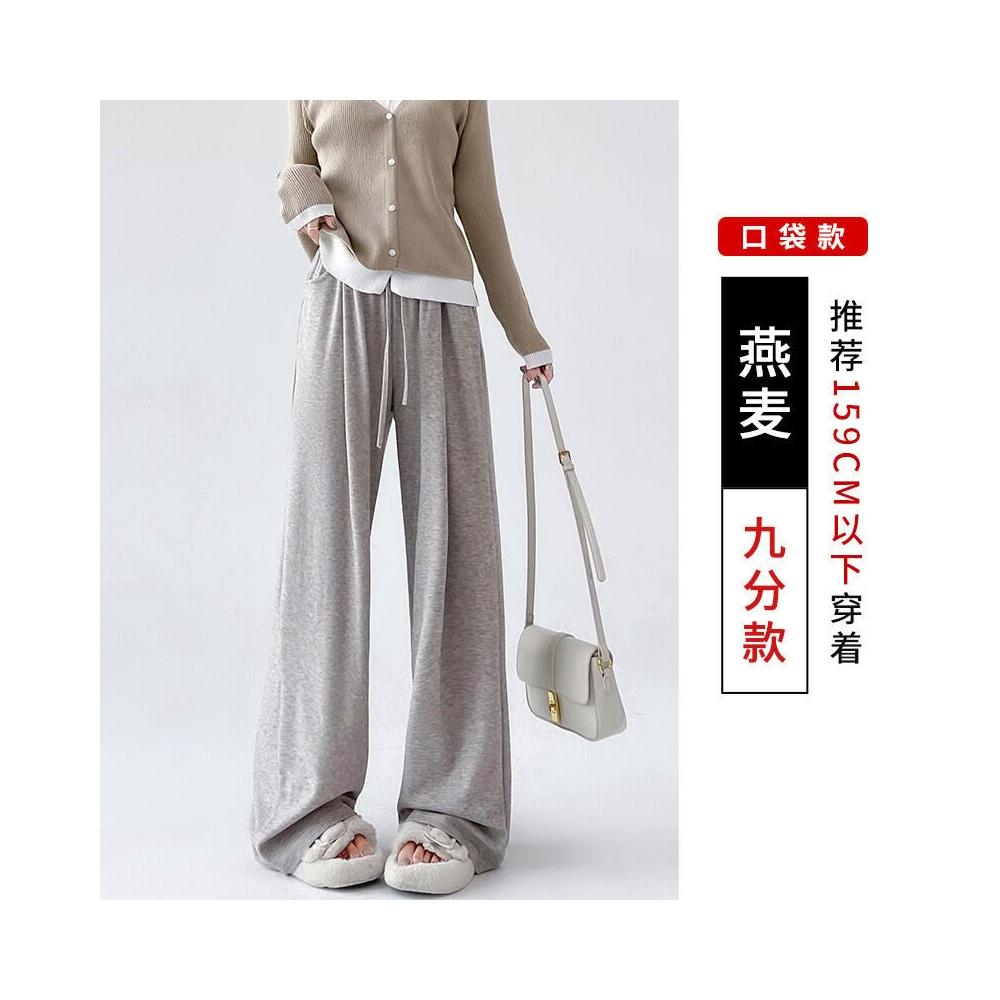 拾光衣櫥 春秋新款針織雲朵糯米褲寬松高腰垂感休閑闊腿褲慵懶窄版拖地褲子