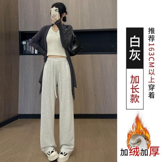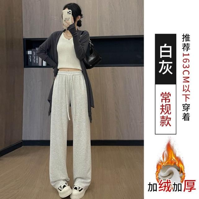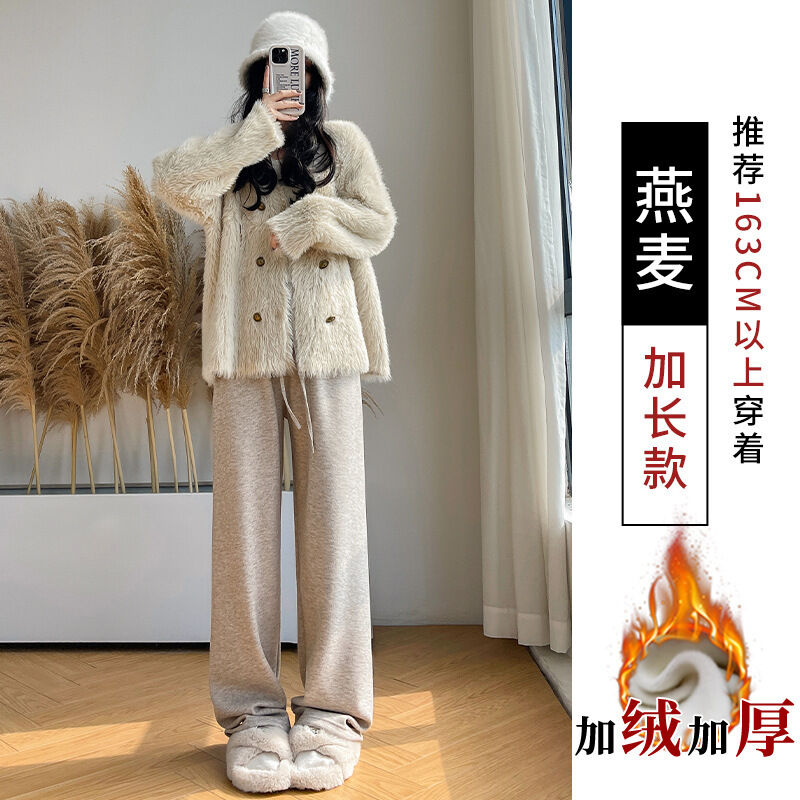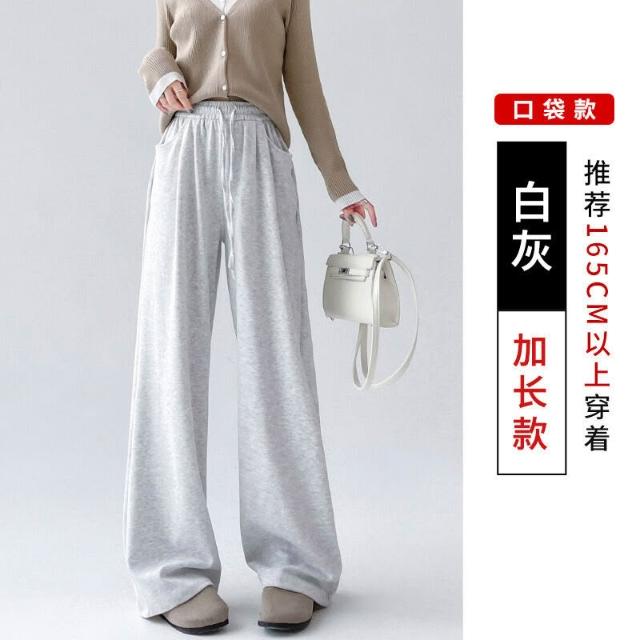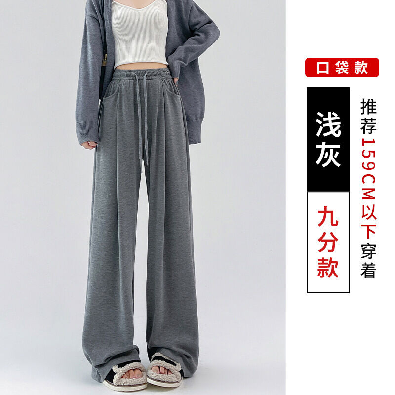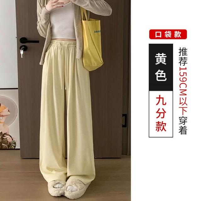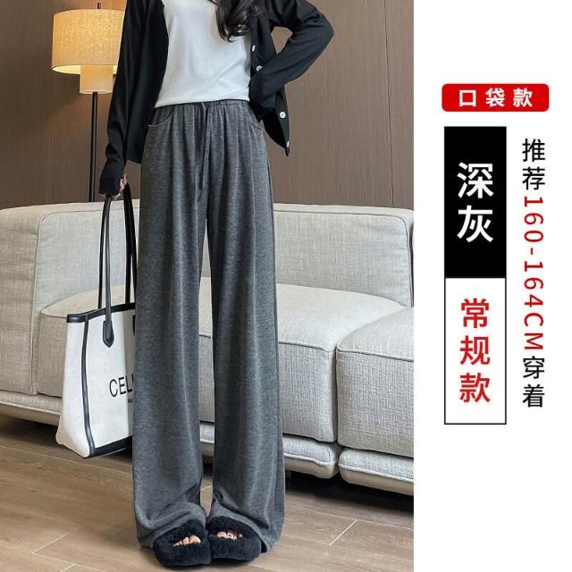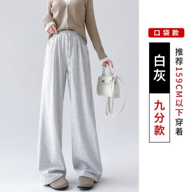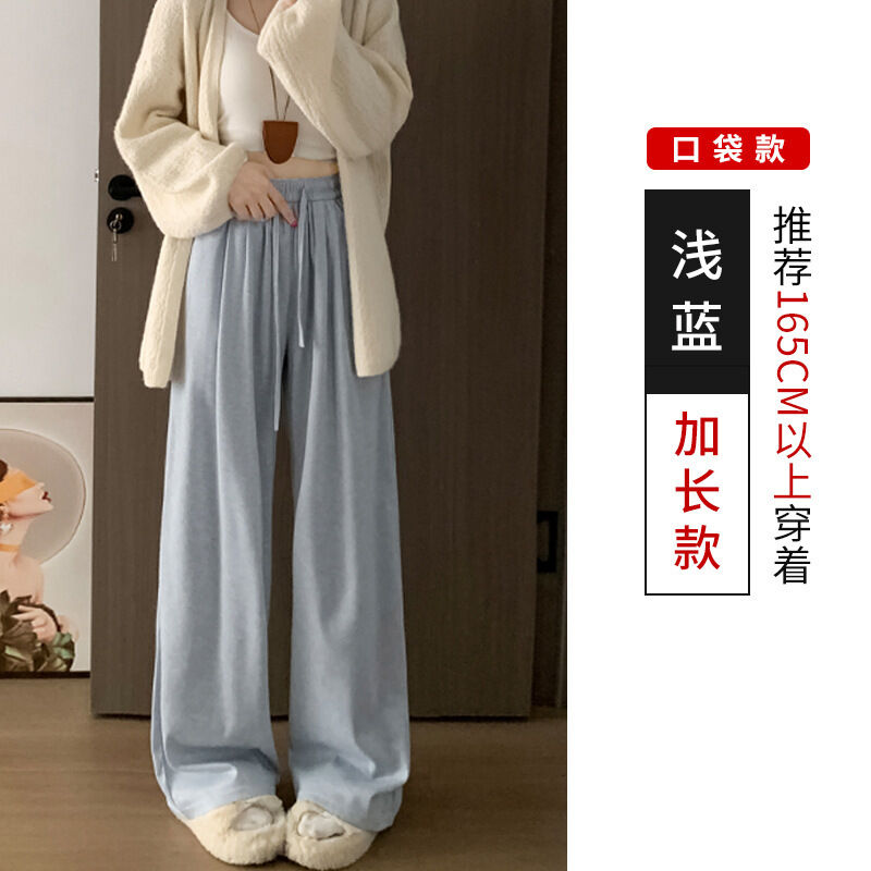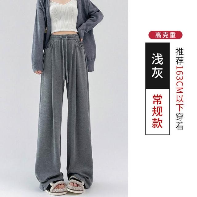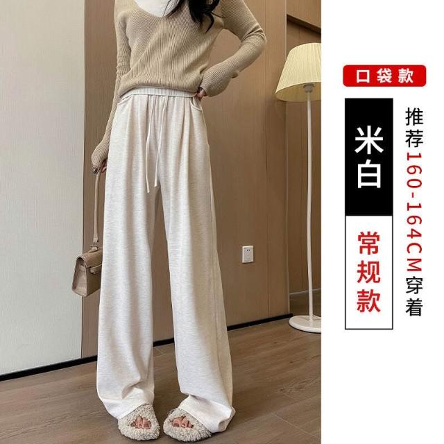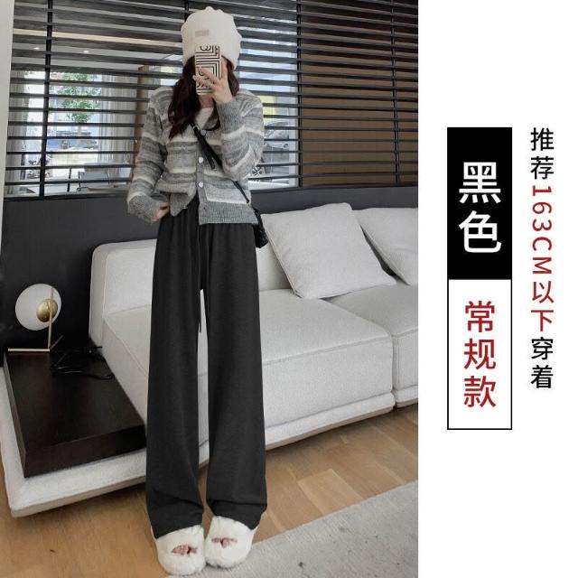 拾光衣櫥 春秋新款針織雲朵糯米褲寬松高腰垂感休閑闊腿褲慵懶窄版拖地褲子