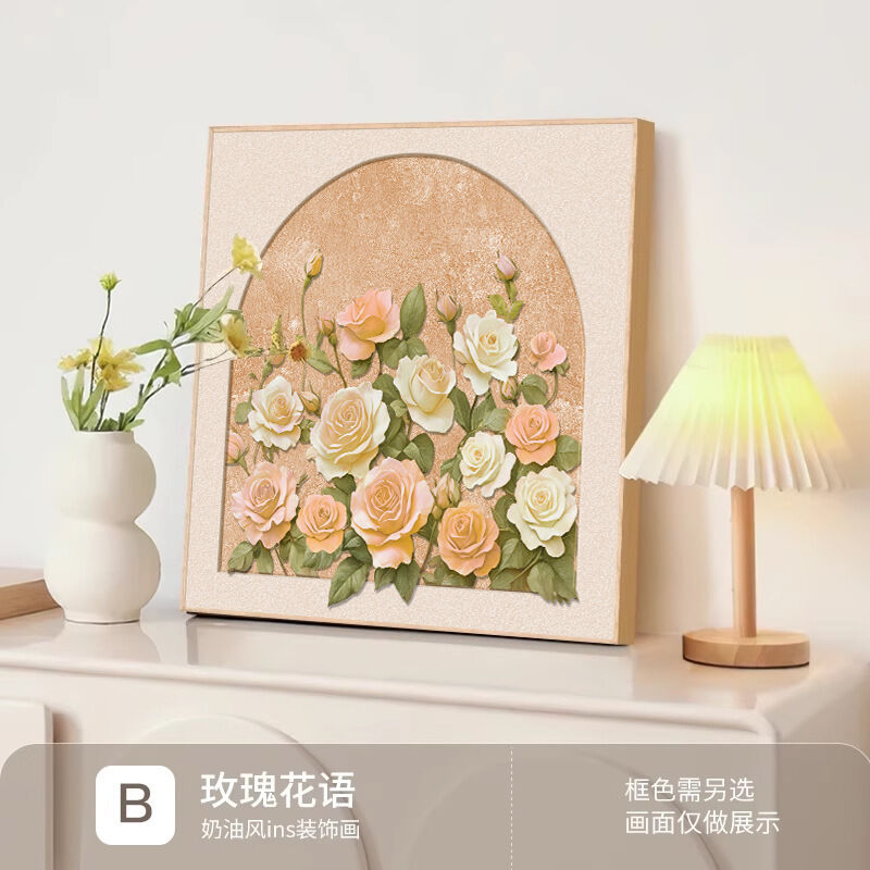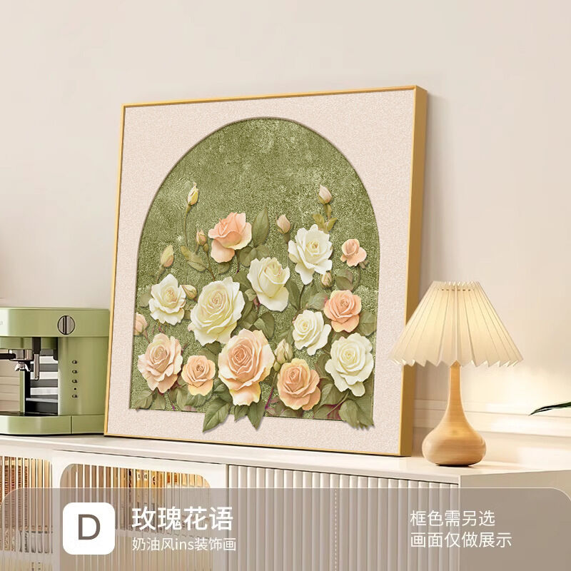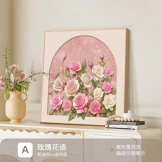拾光衣櫥 法式奶油風玫瑰花卉客廳臥室裝飾畫桌面鬥櫃擺畫沙發背景墻壁掛畫
