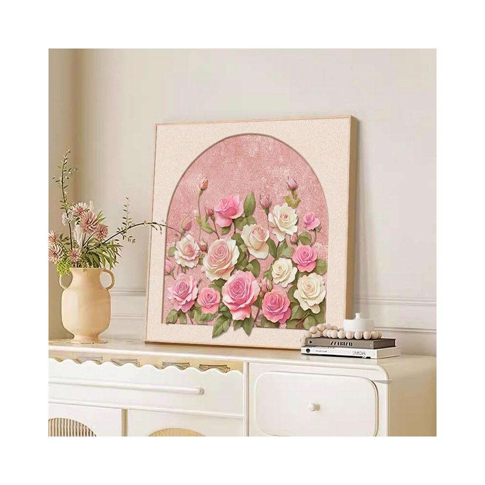 拾光衣櫥 法式奶油風玫瑰花卉客廳臥室裝飾畫桌面鬥櫃擺畫沙發背景墻壁掛畫