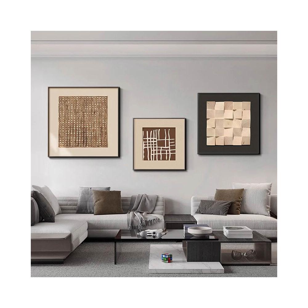 拾光衣櫥 簡約現代客廳裝飾畫高級感沙發背景壁畫黑白幾何抽象肌理三聯掛畫