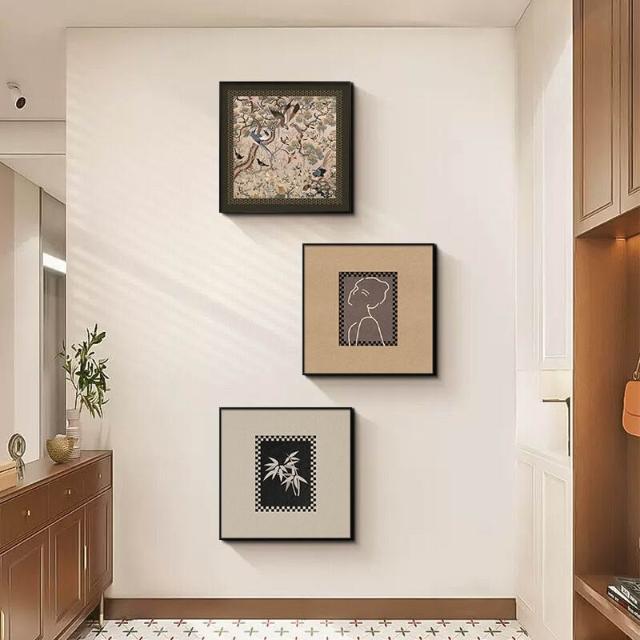 拾光衣櫥 簡約現代客廳裝飾畫高級感沙發背景壁畫黑白幾何抽象肌理三聯掛畫