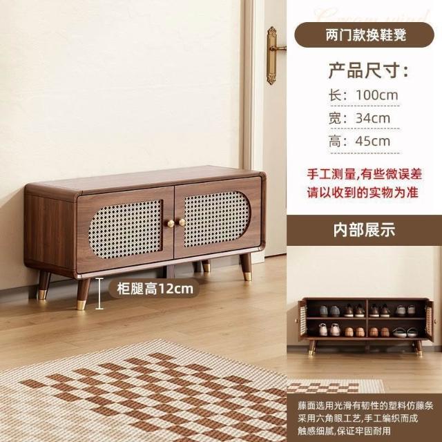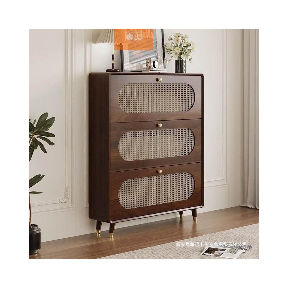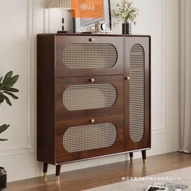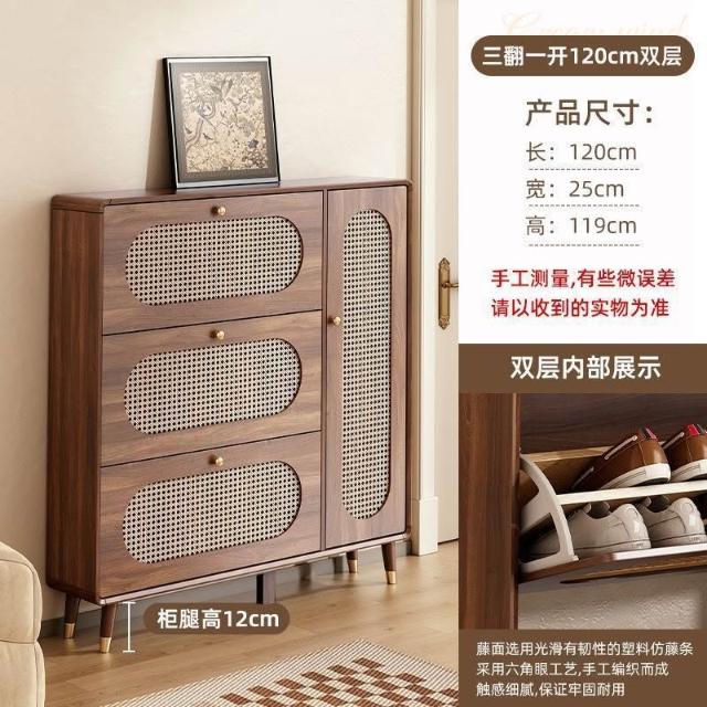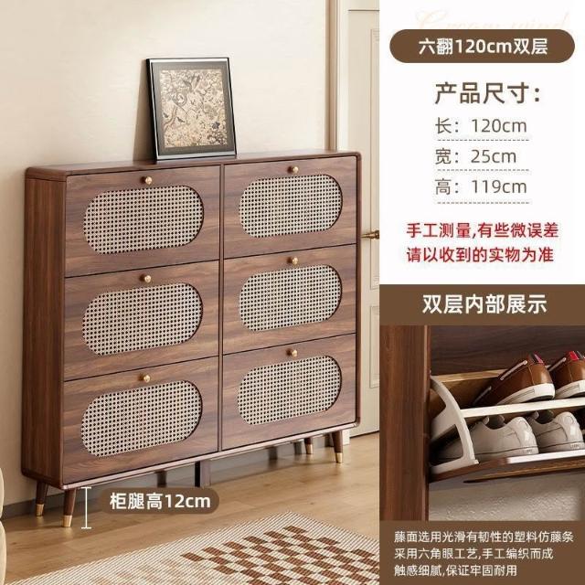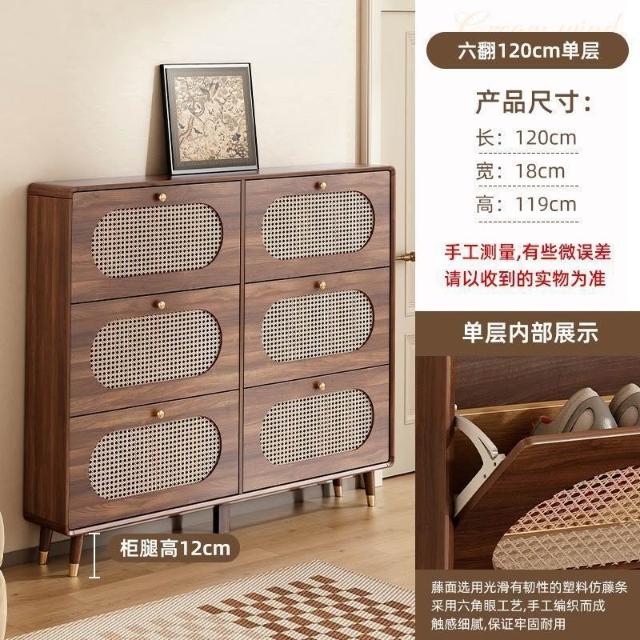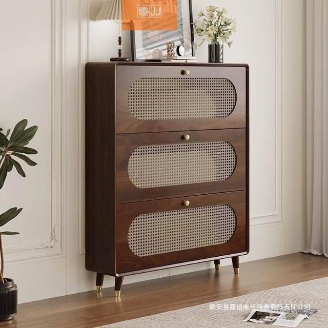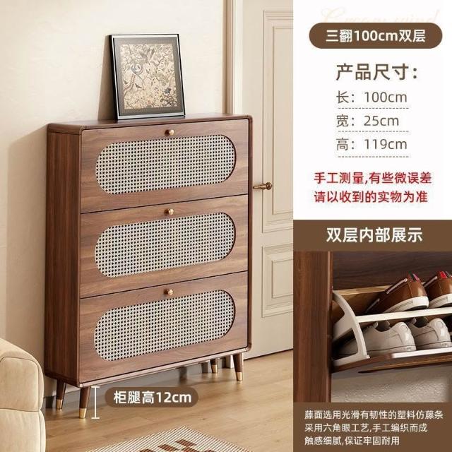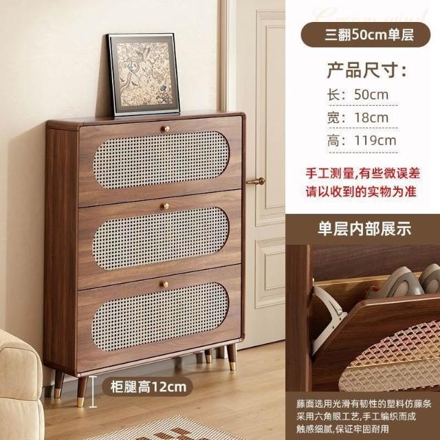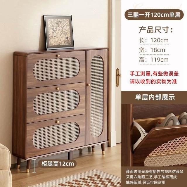 現代新款簡約復古超薄藤編鞋櫃家用門口玄關儲物櫃入戶翻鬥收納櫃