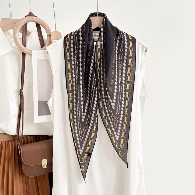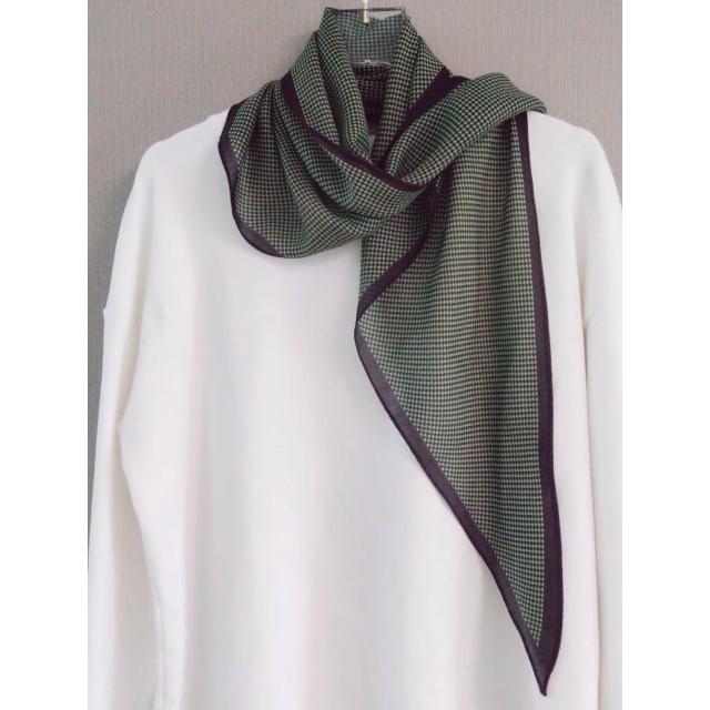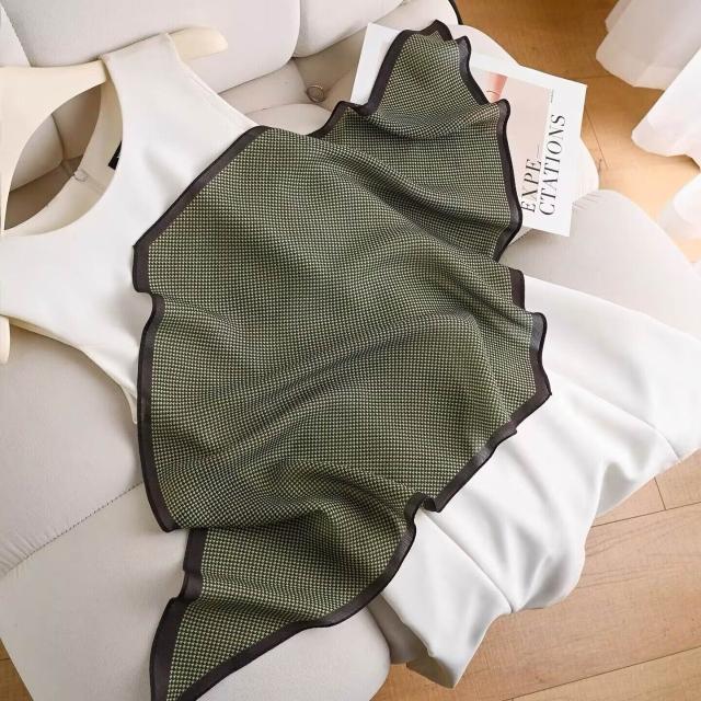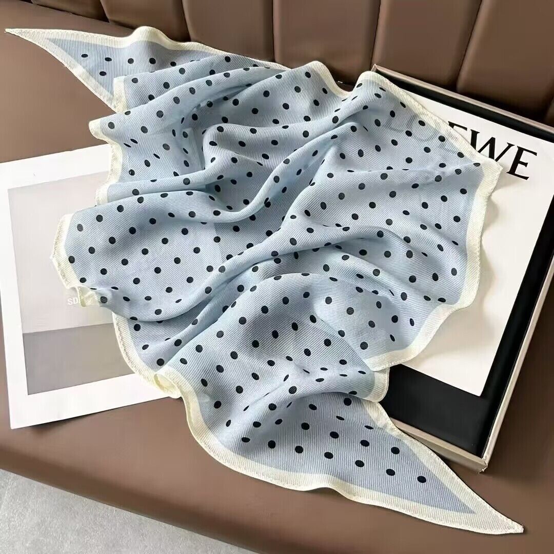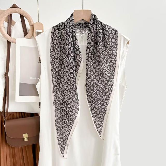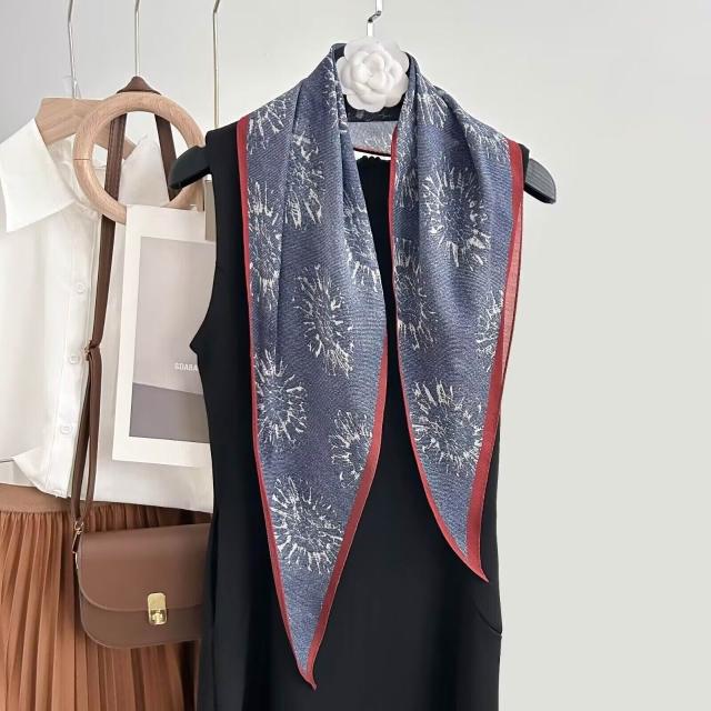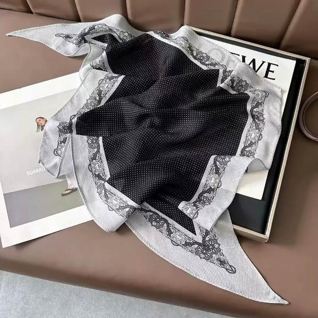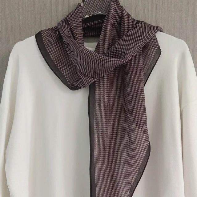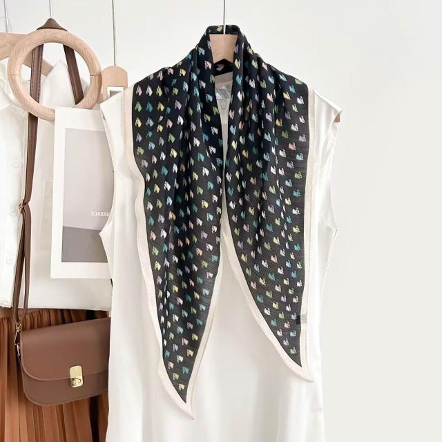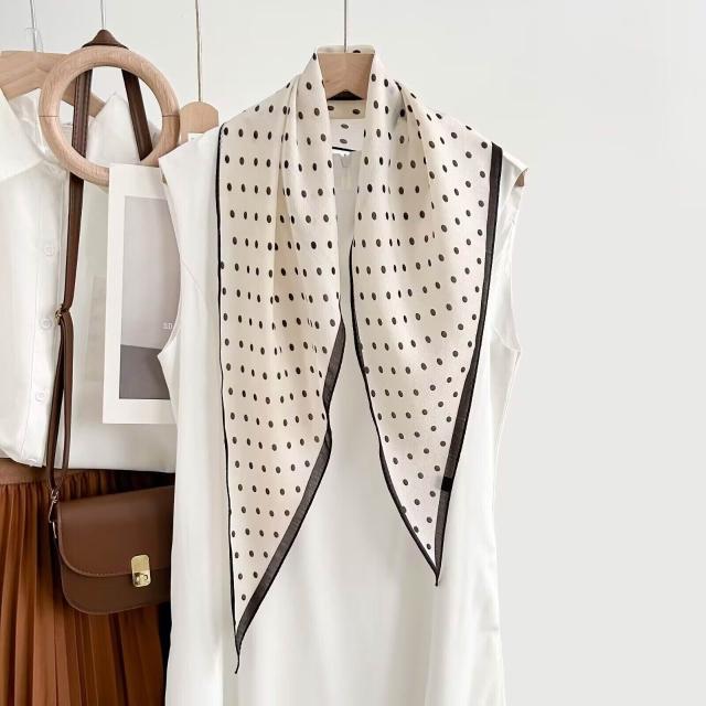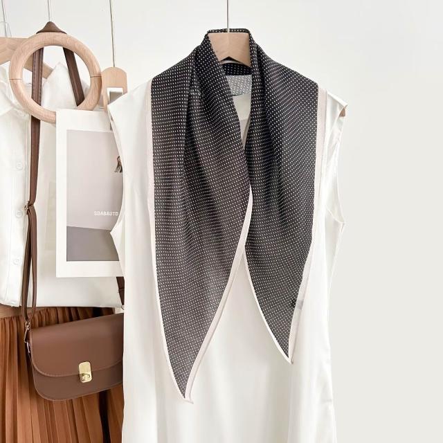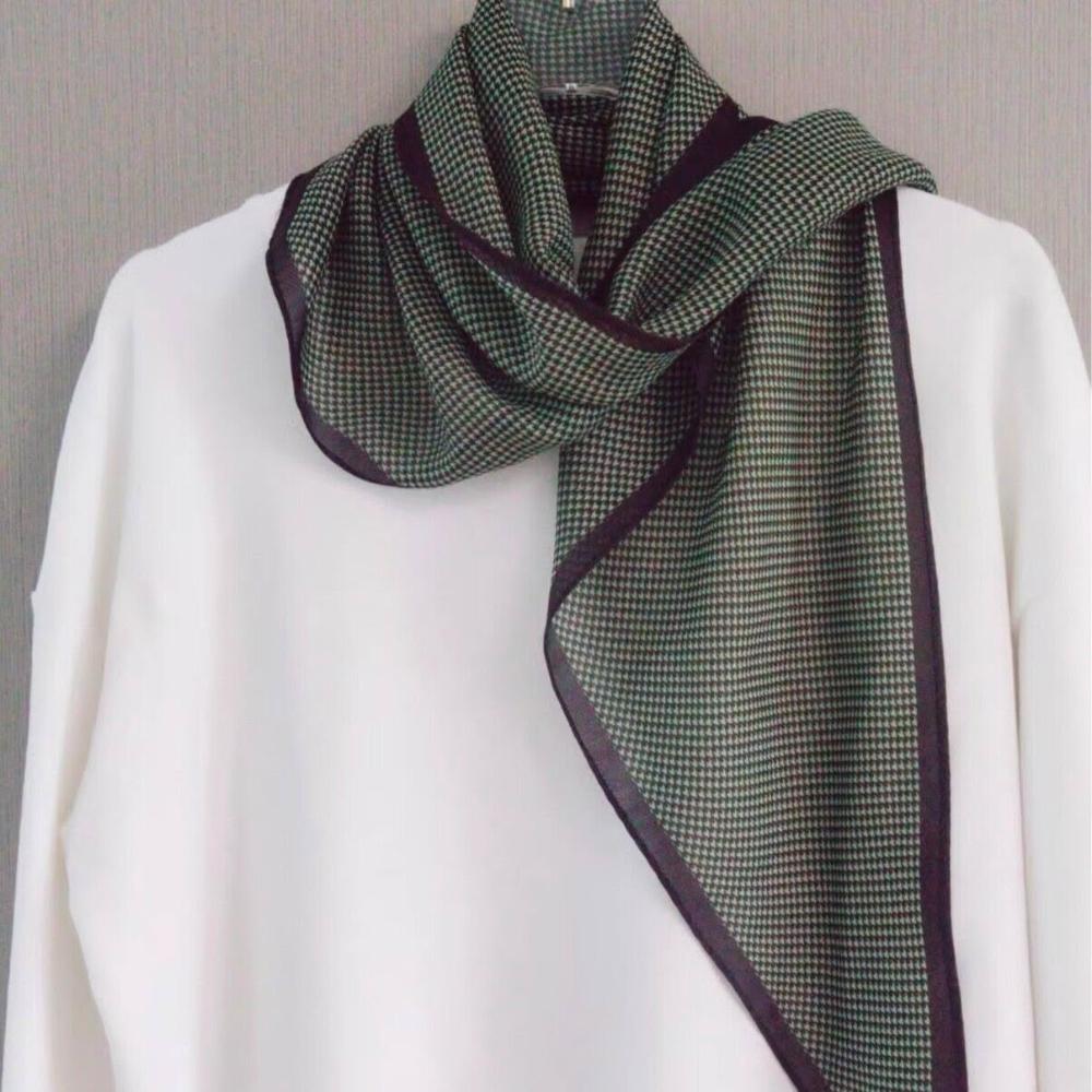 真絲羊毛菱形巾長條千鳥格小絲巾女桑蠶絲春夏新款黑白波點百搭領