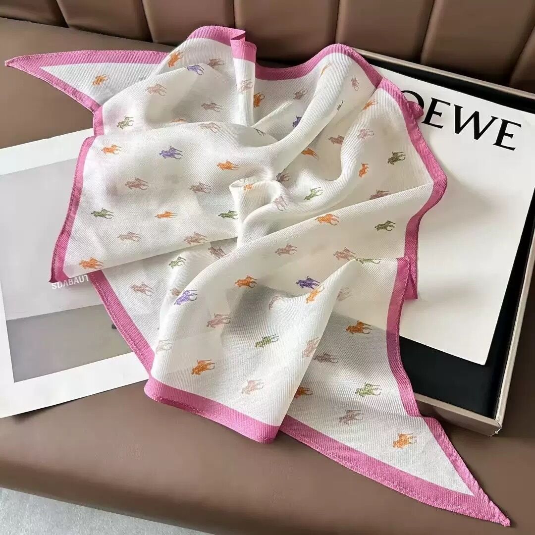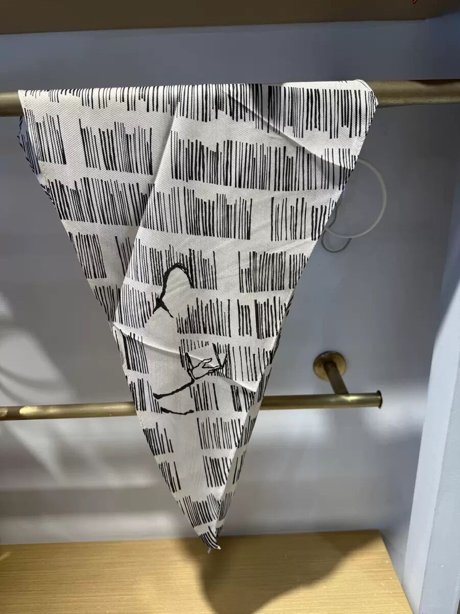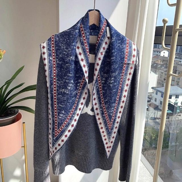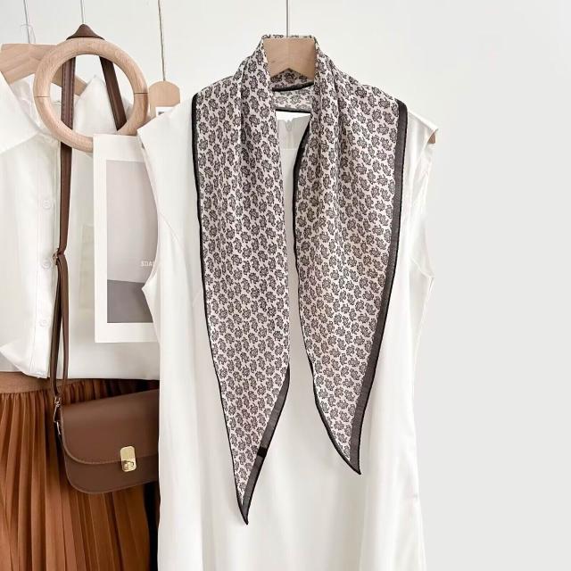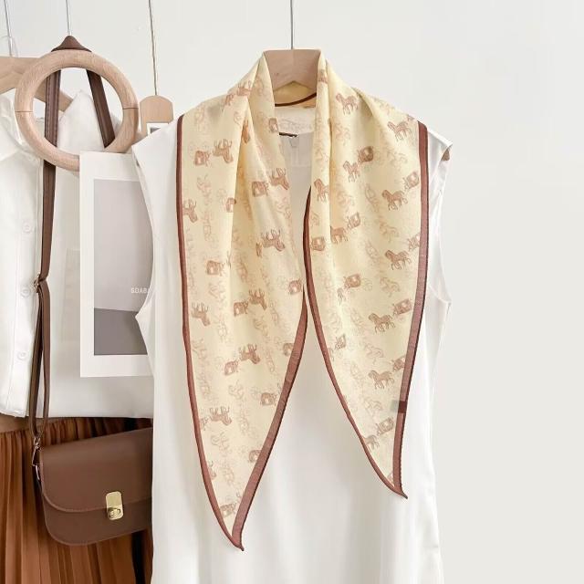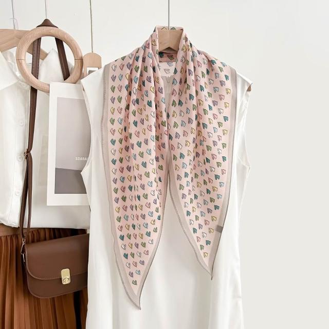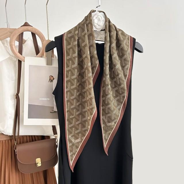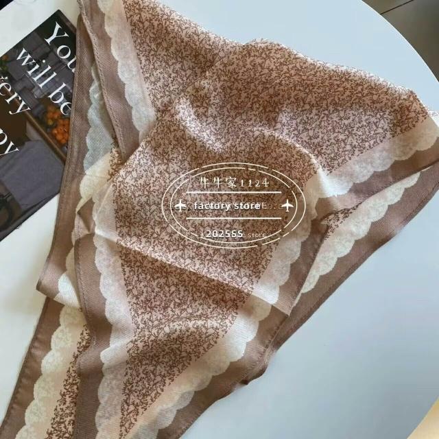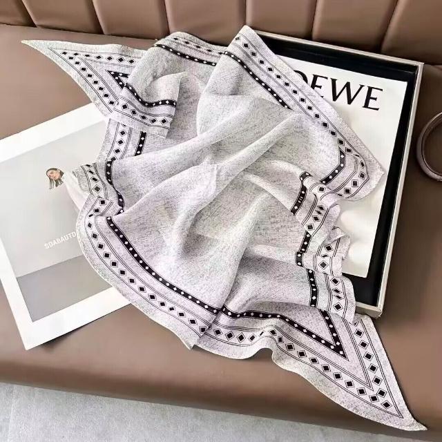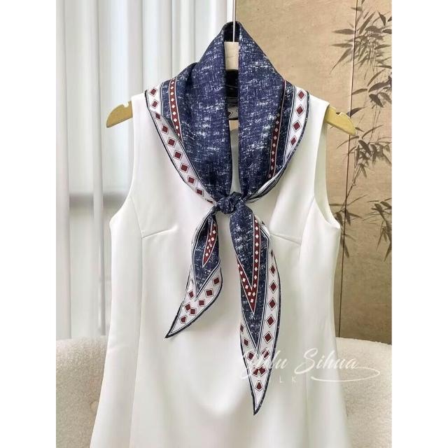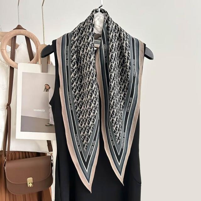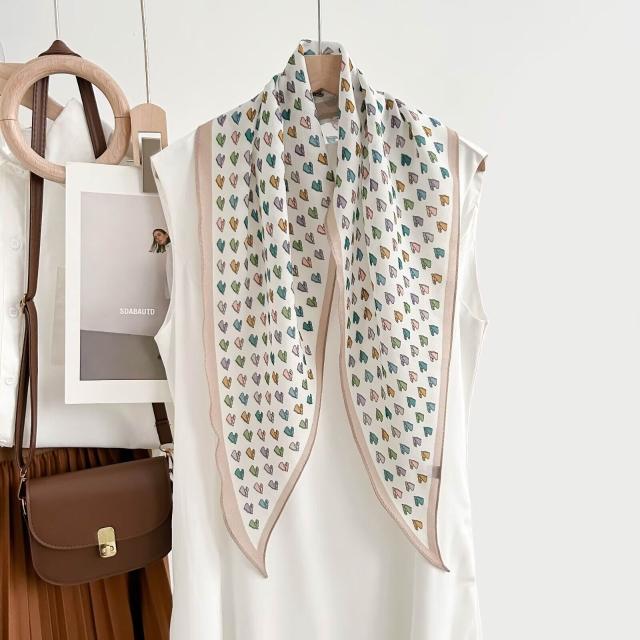 真絲羊毛菱形巾長條千鳥格小絲巾女桑蠶絲春夏新款黑白波點百搭領
