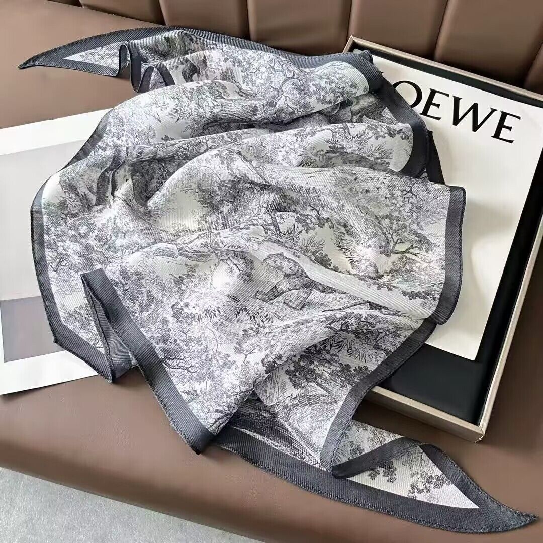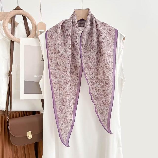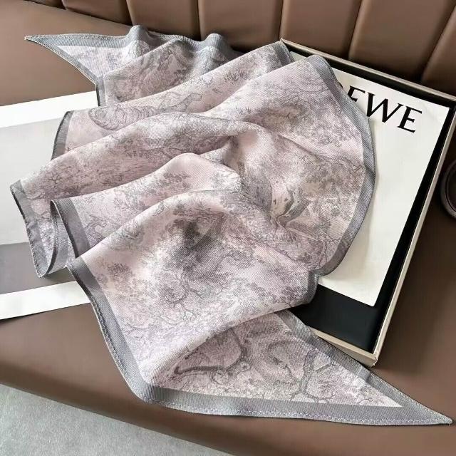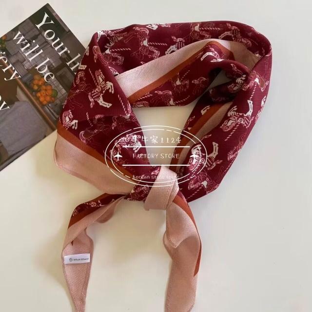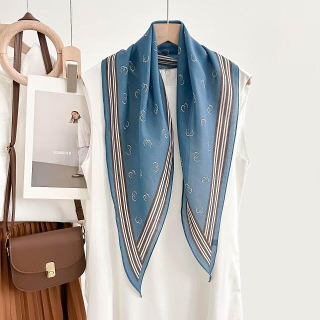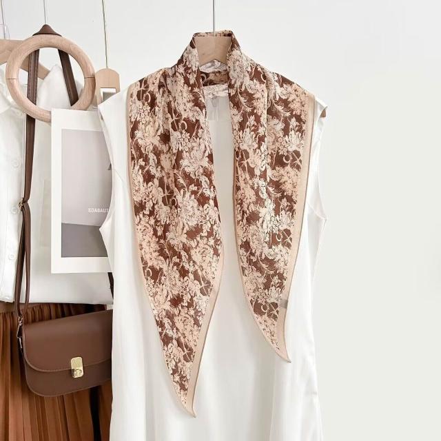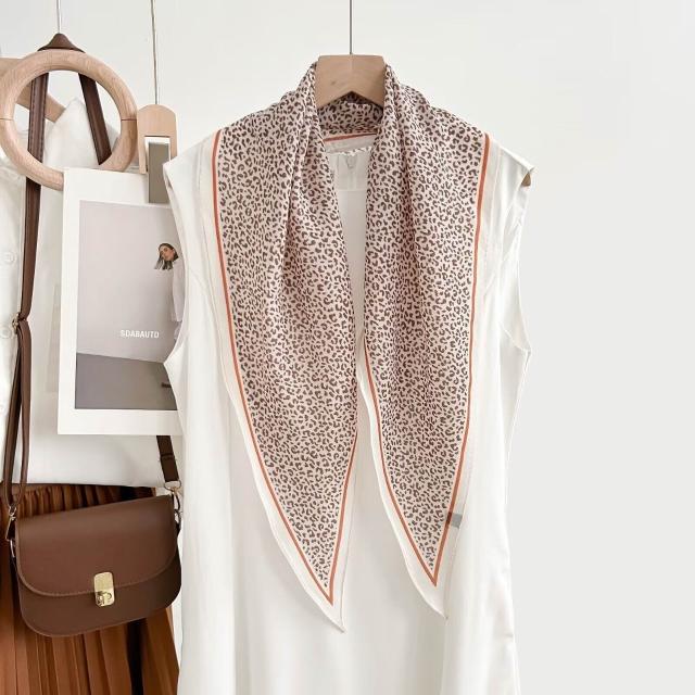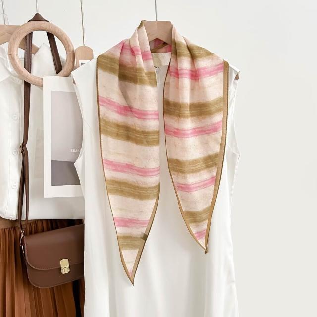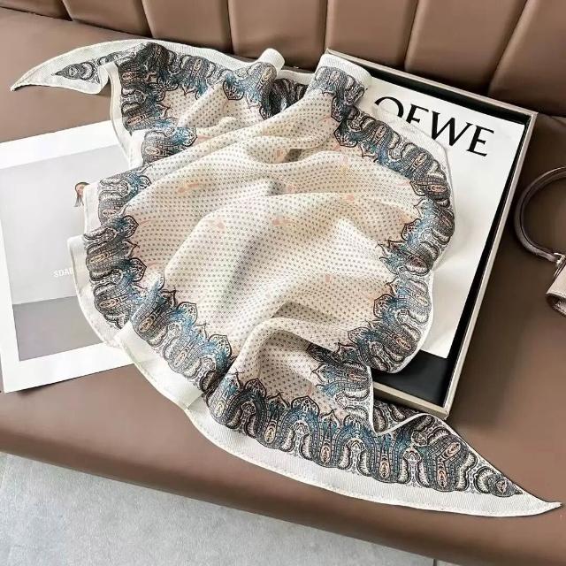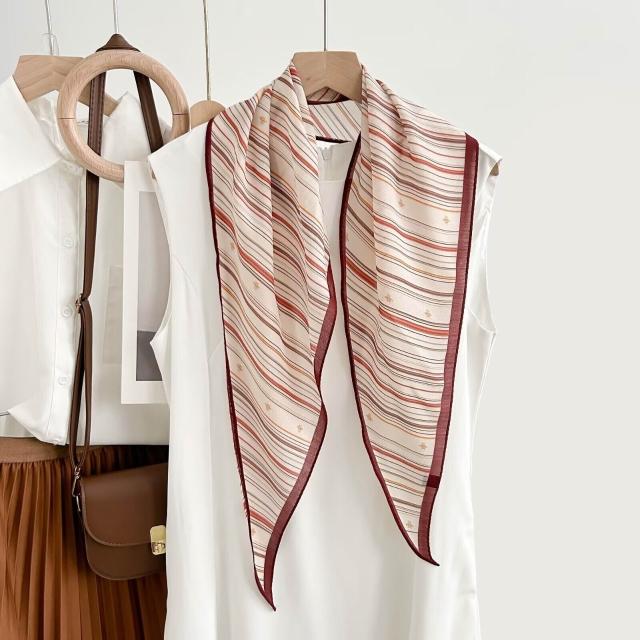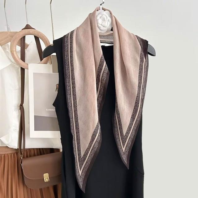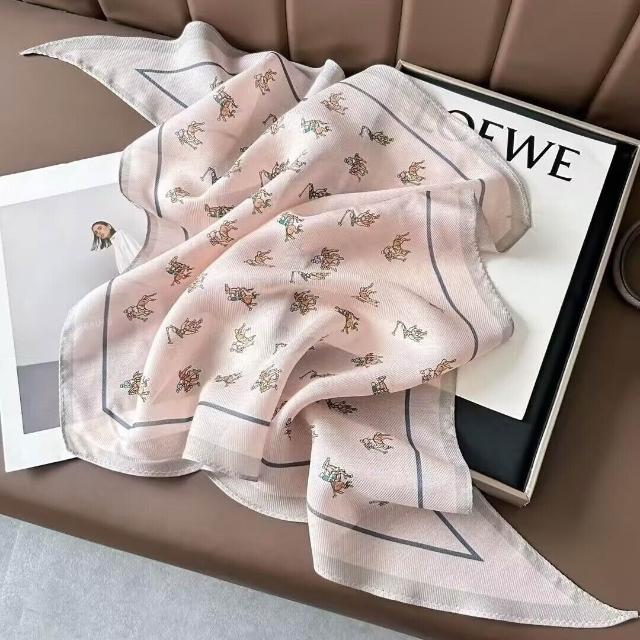 真絲羊毛菱形巾長條千鳥格小絲巾女桑蠶絲春夏新款黑白波點百搭領