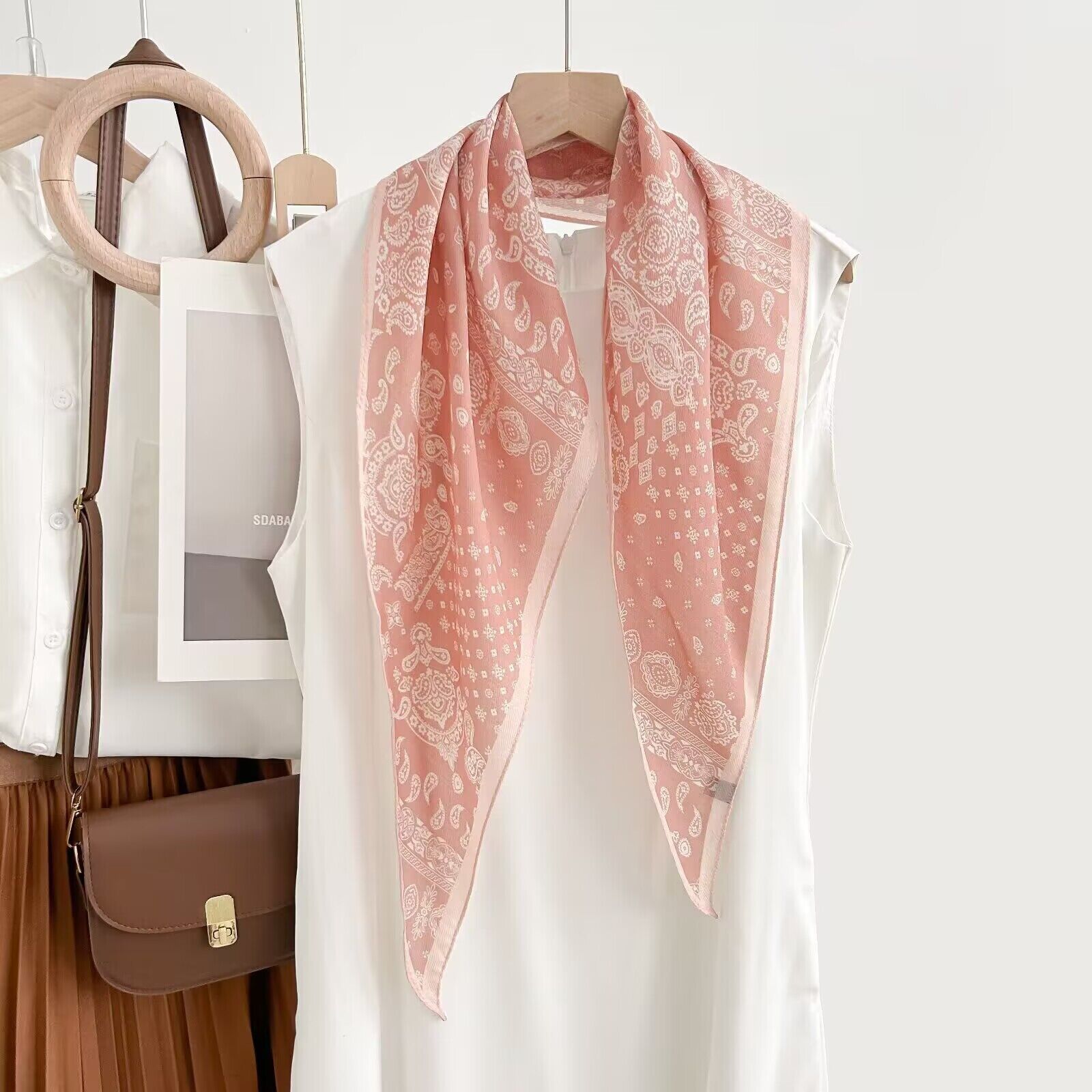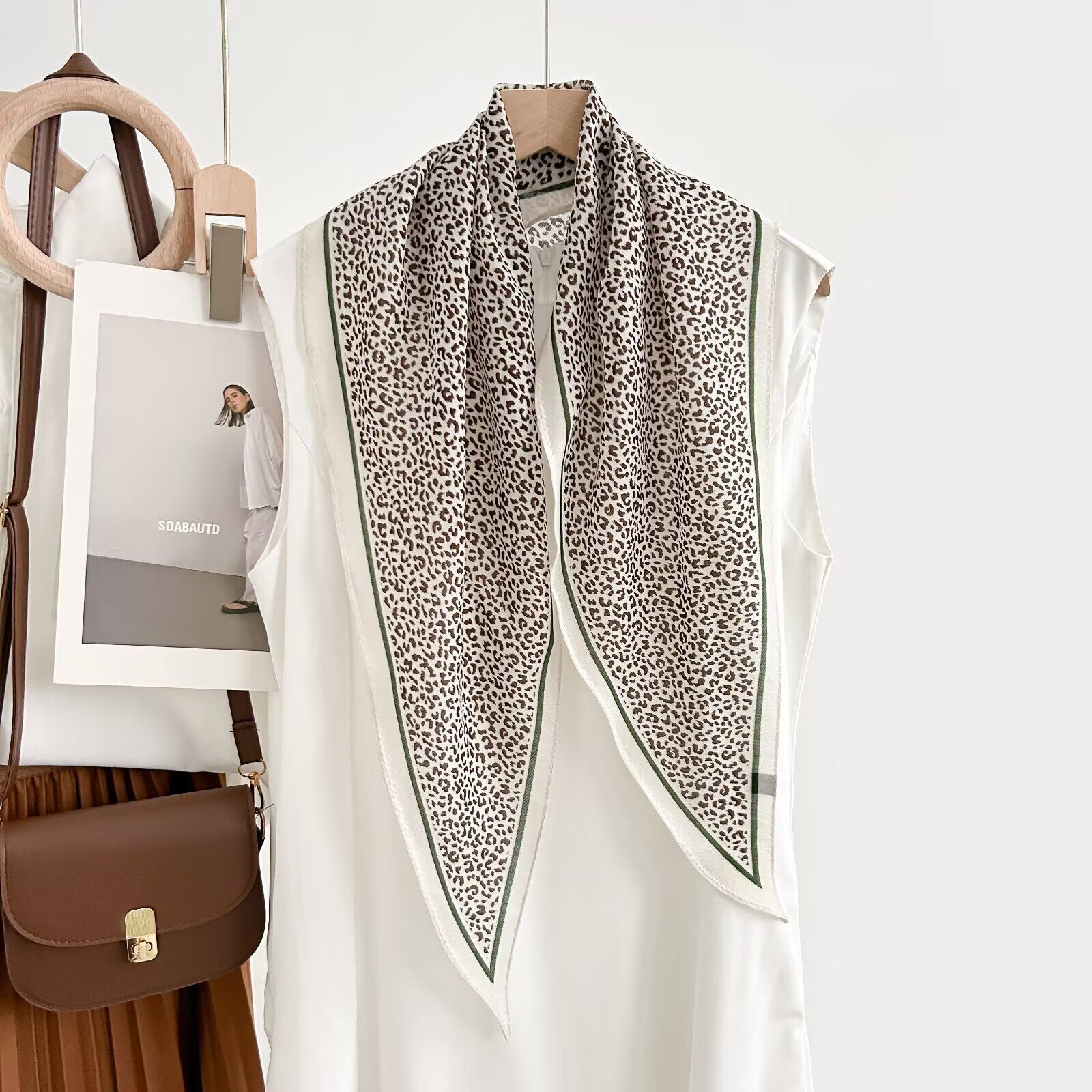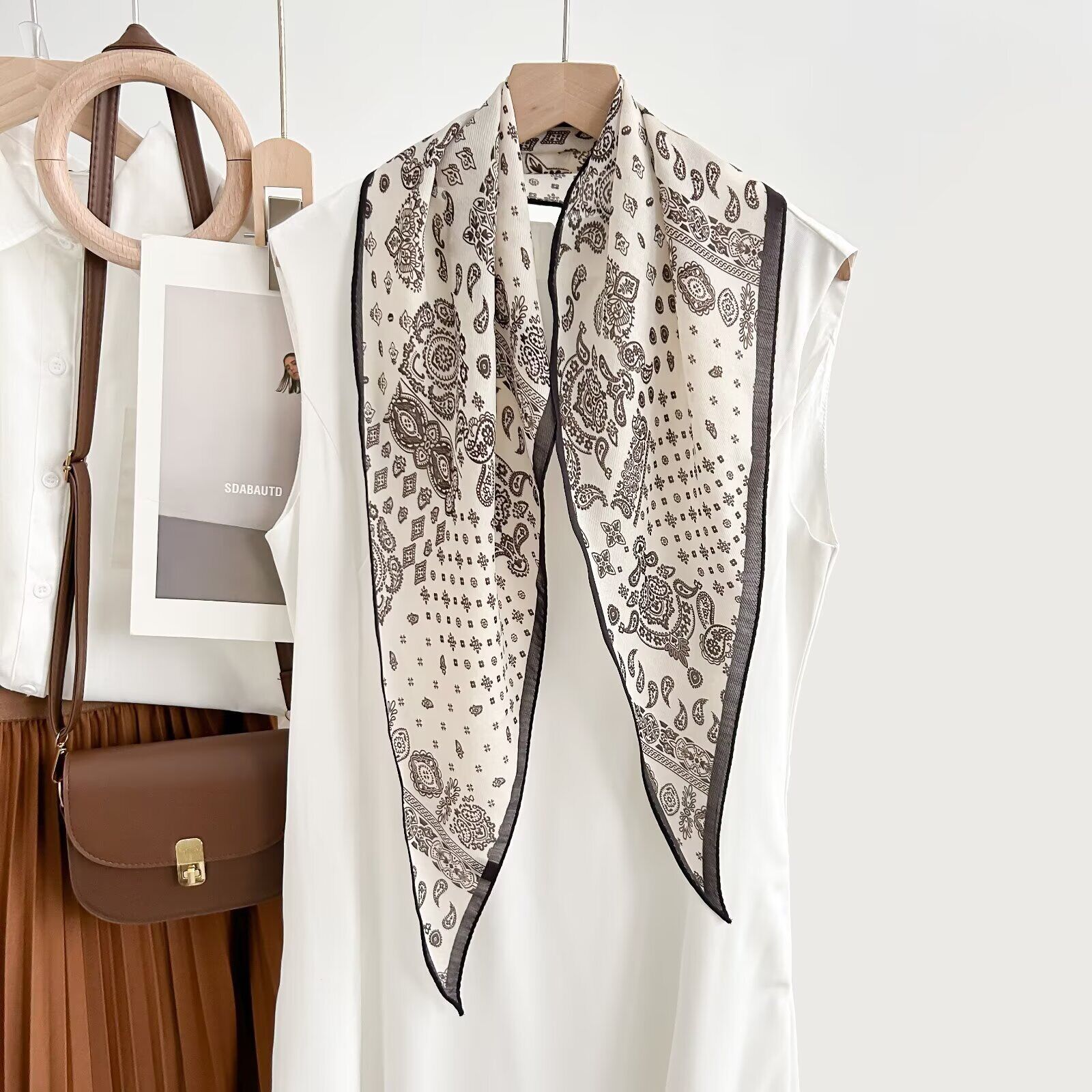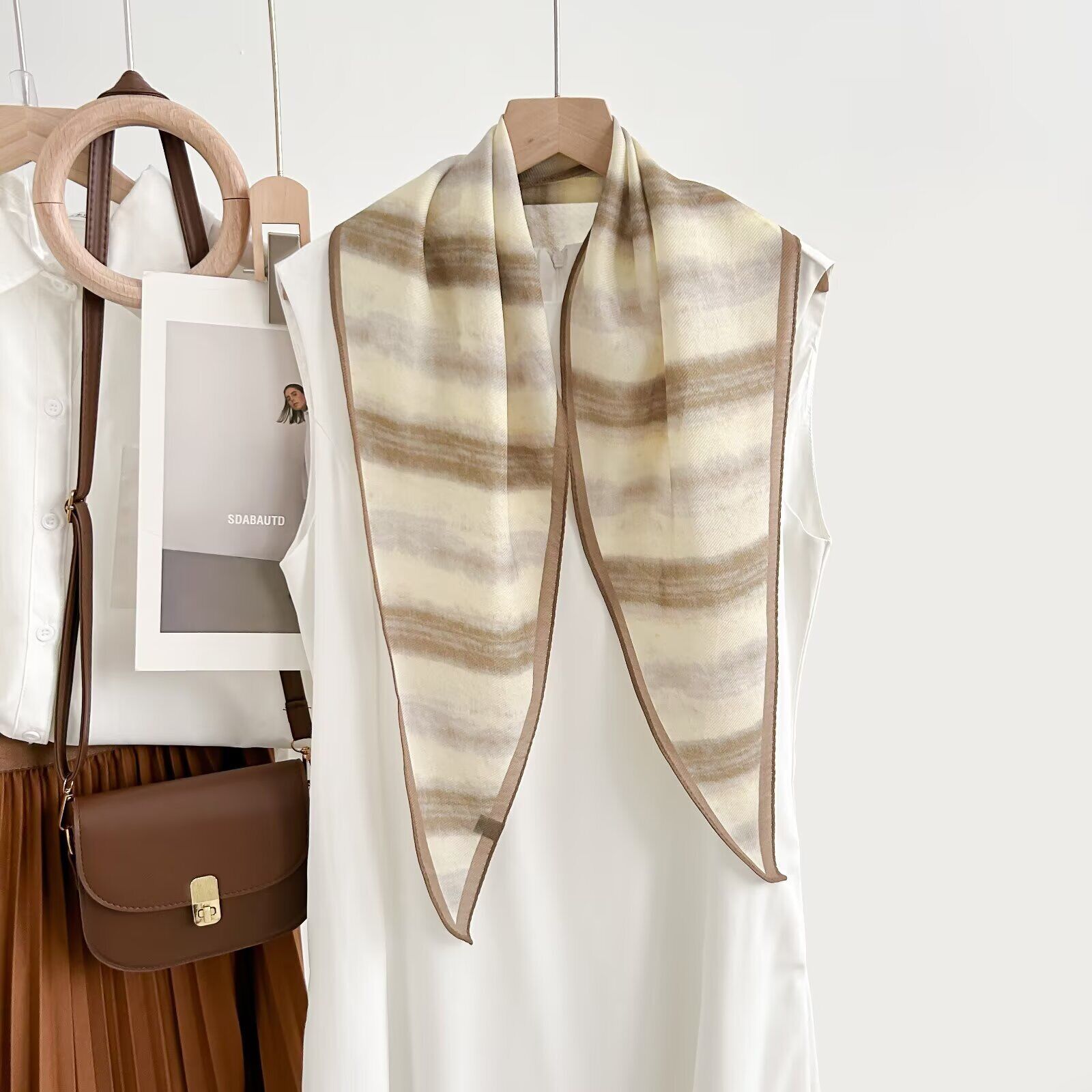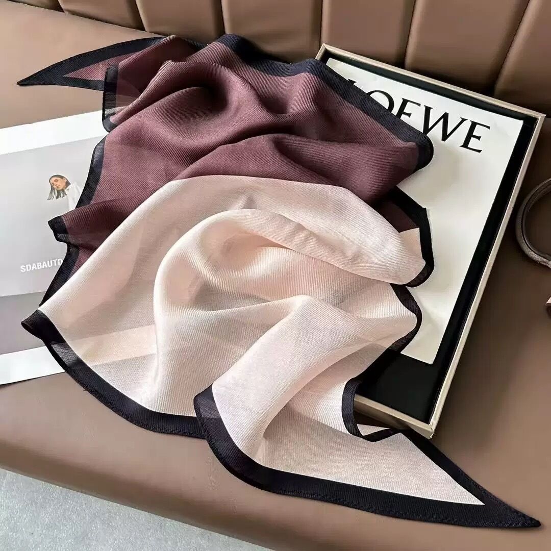 真絲羊毛菱形巾長條千鳥格小絲巾女桑蠶絲春夏新款黑白波點百搭領