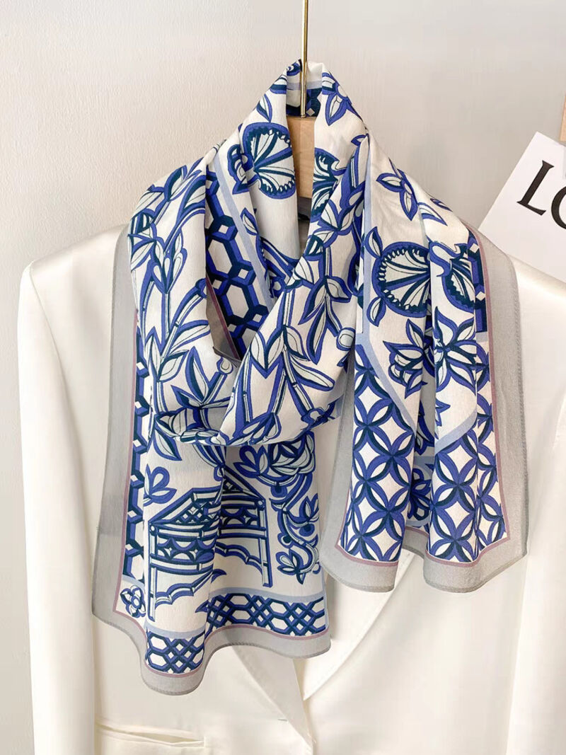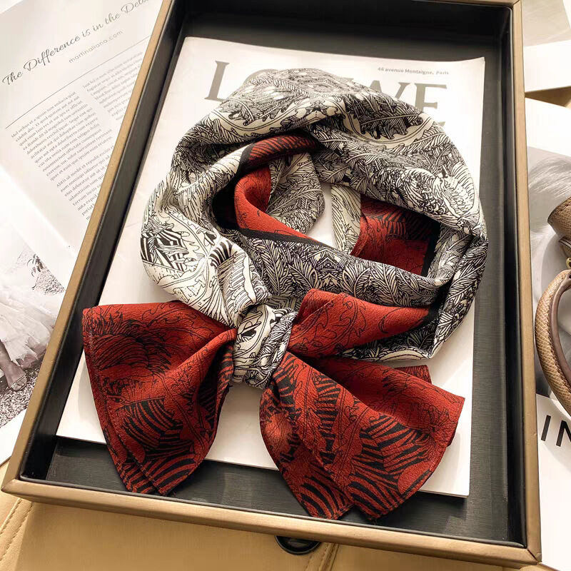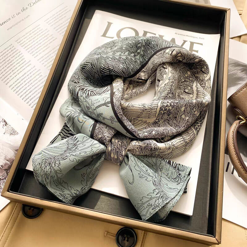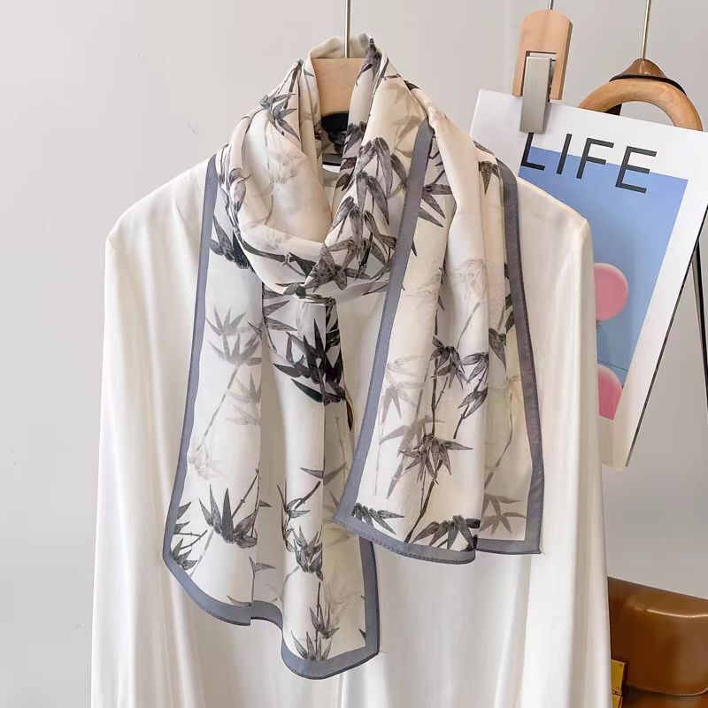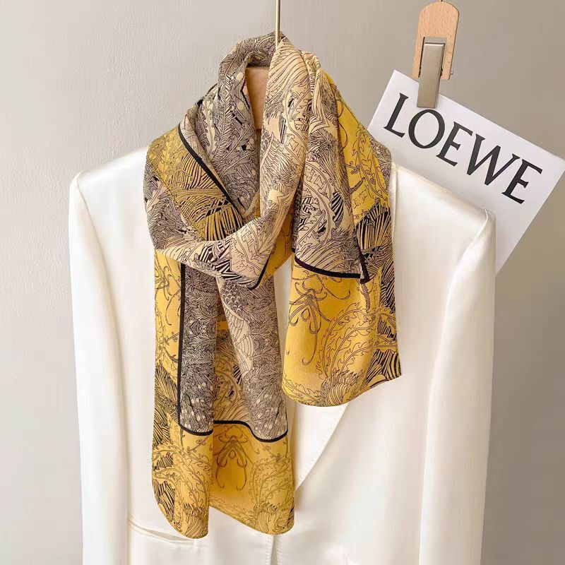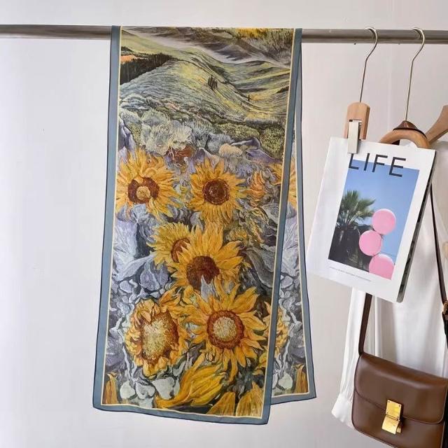跨境新款絲巾數碼噴繪印花真絲圍巾女桑蠶絲雙绉真絲長款絲巾