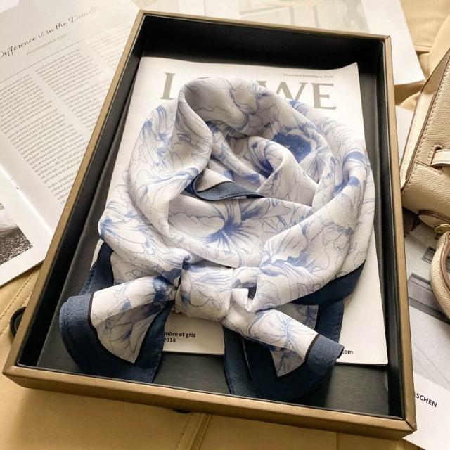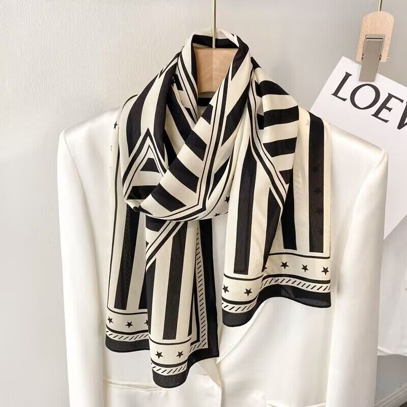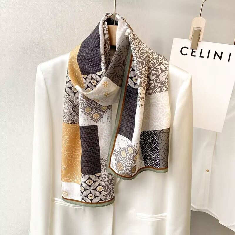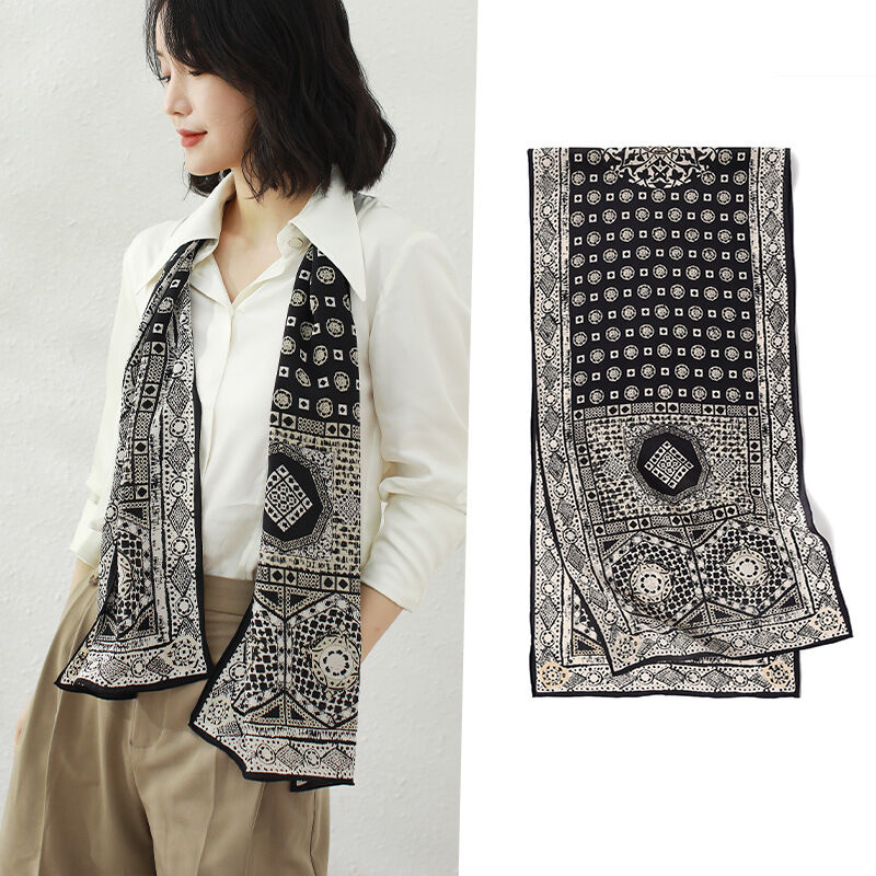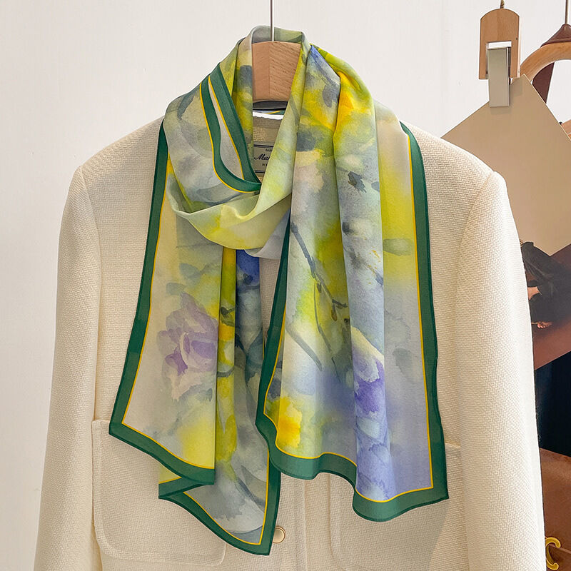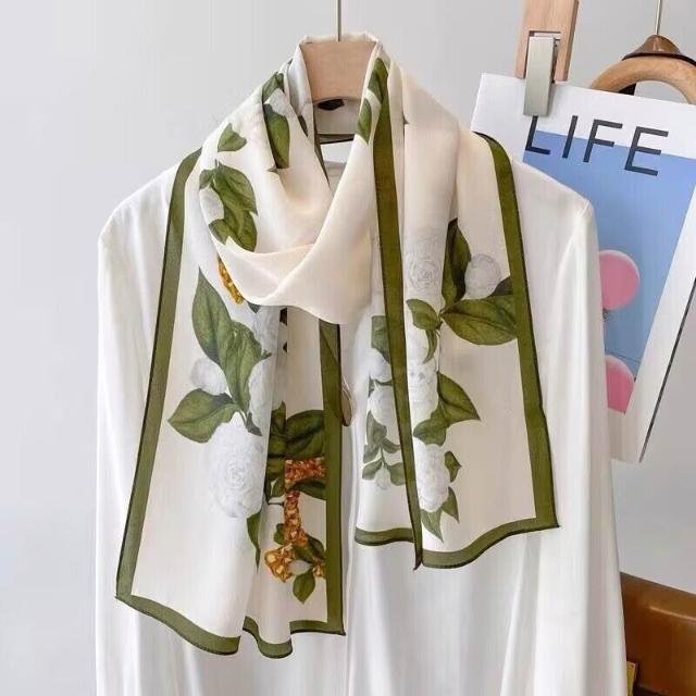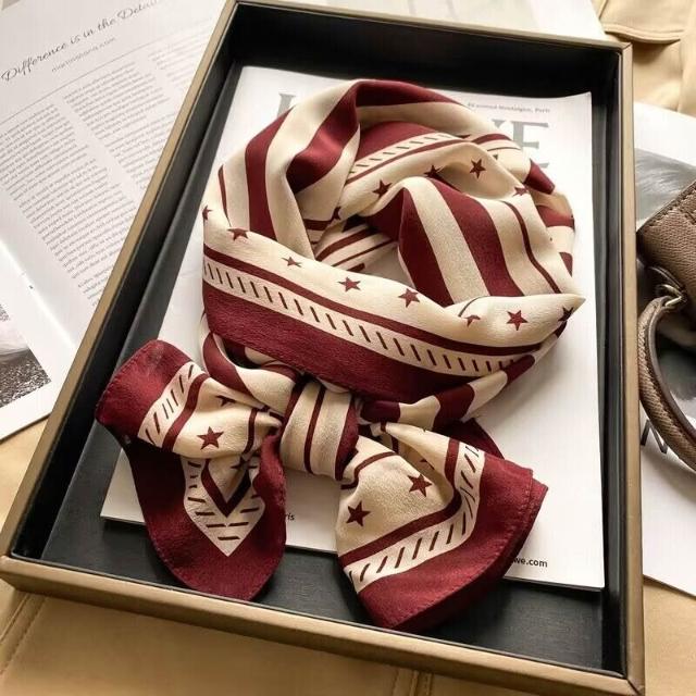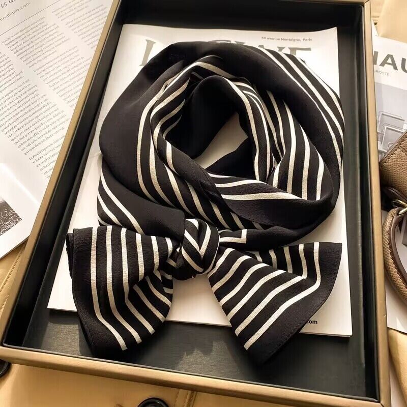 春夏新女真絲雙绉絲巾100%桑蠶絲長條領巾杭州絲綢窄版薄圍巾披肩