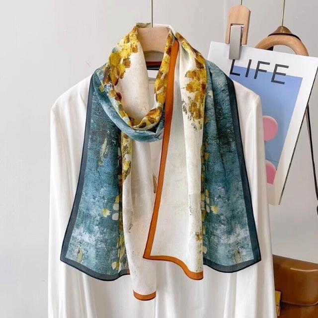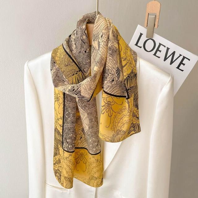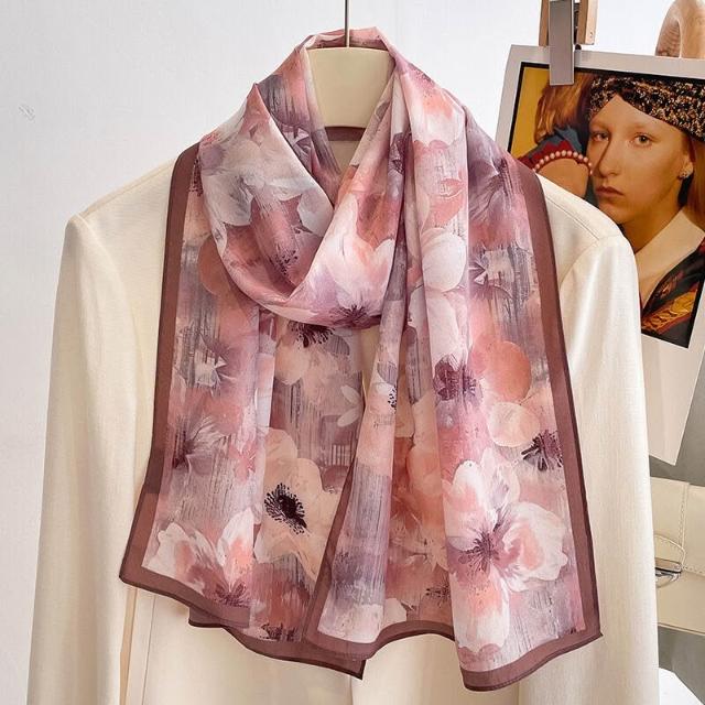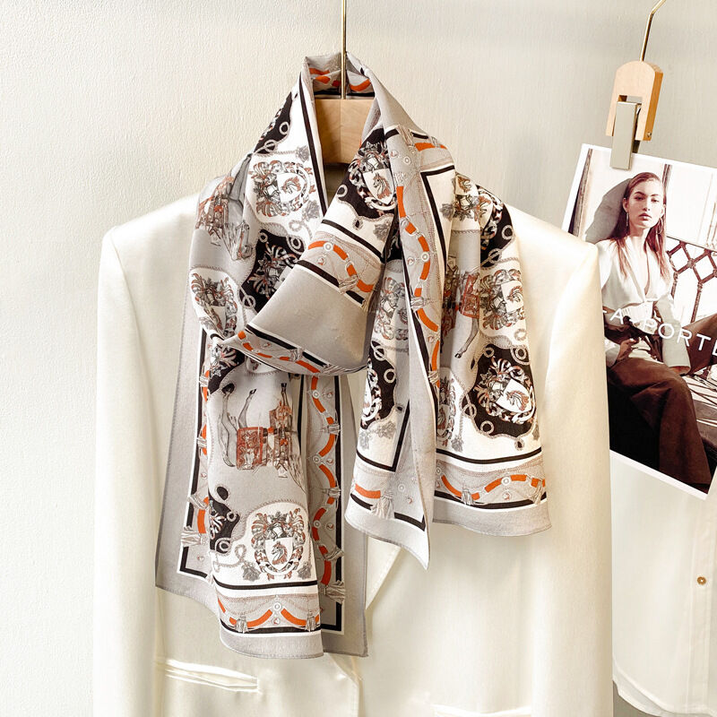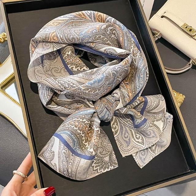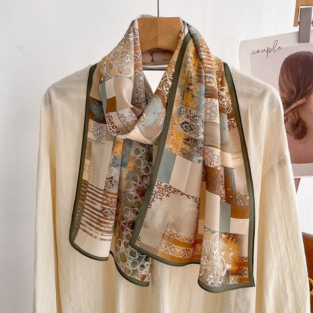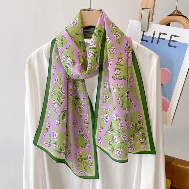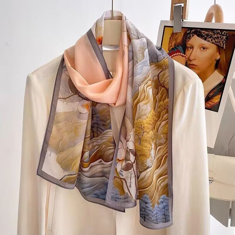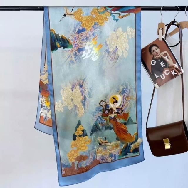 春夏新女真絲雙绉絲巾100%桑蠶絲長條領巾杭州絲綢窄版薄圍巾披肩