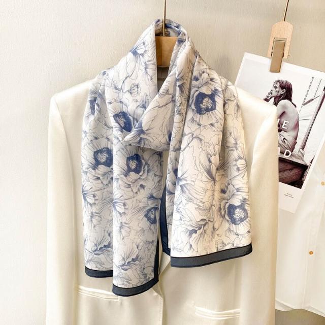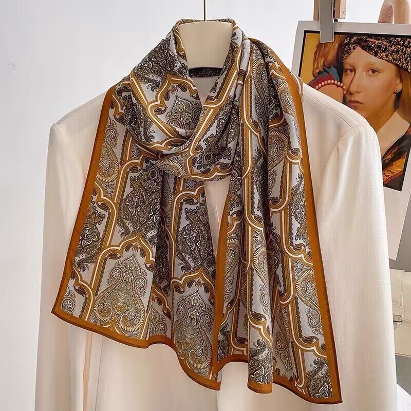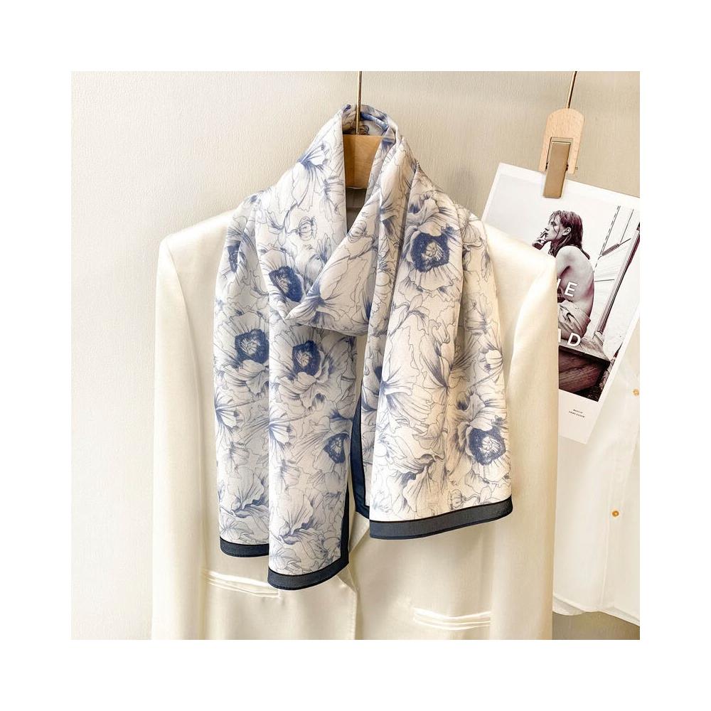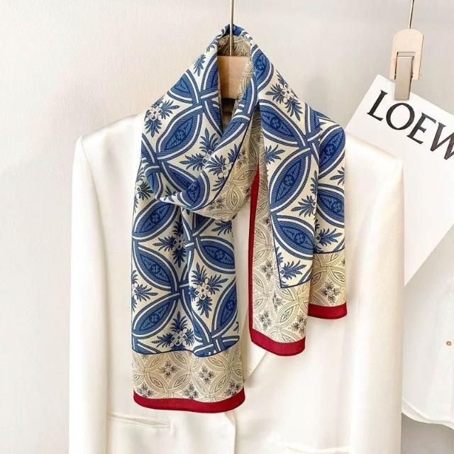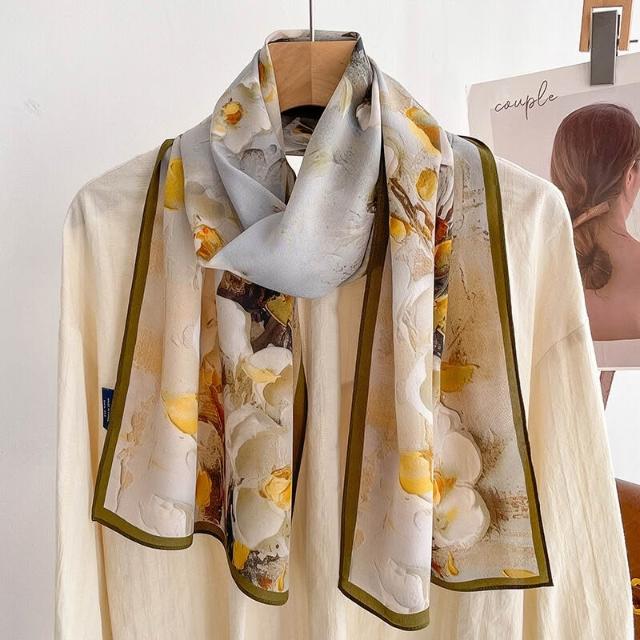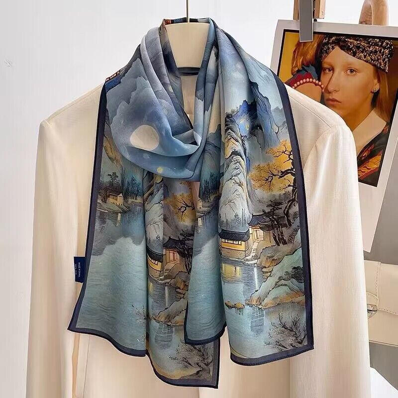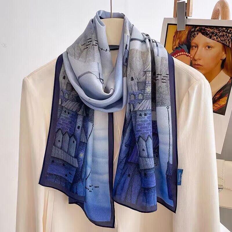 春夏新女真絲雙绉絲巾100%桑蠶絲長條領巾杭州絲綢窄版薄圍巾披肩