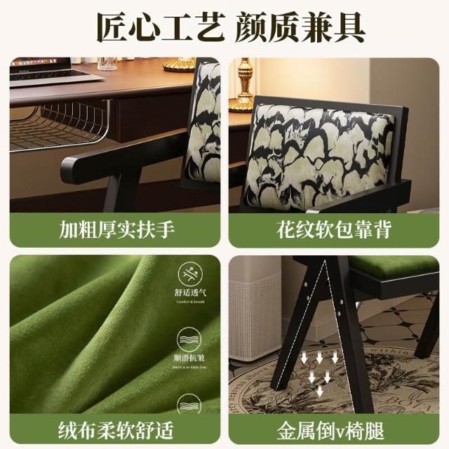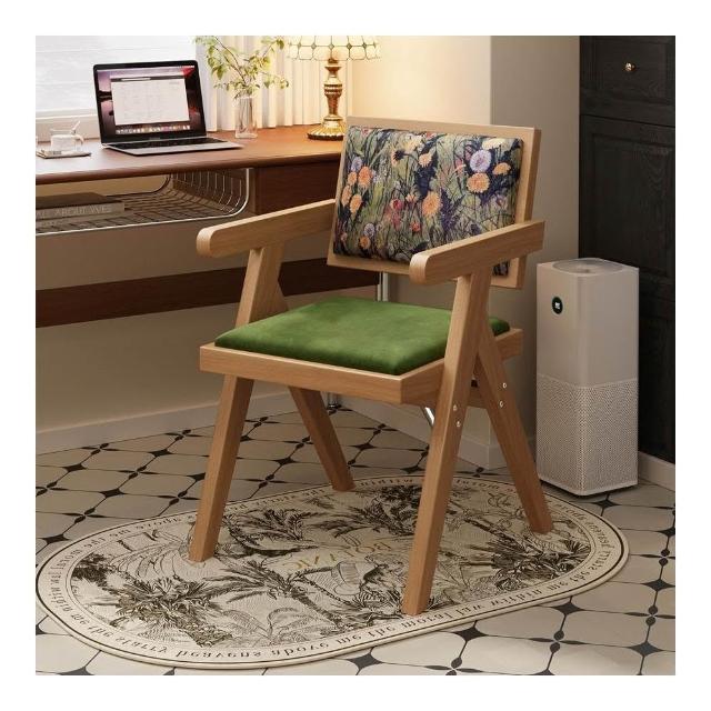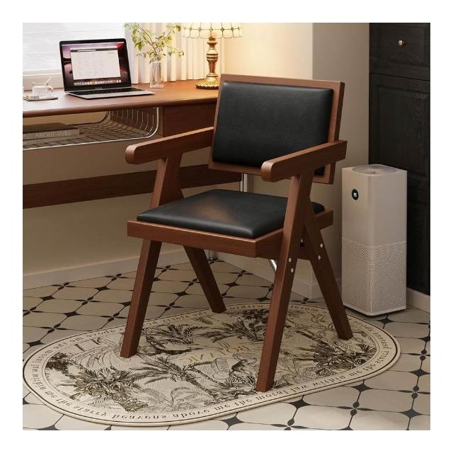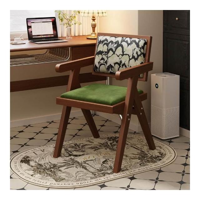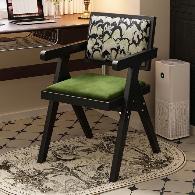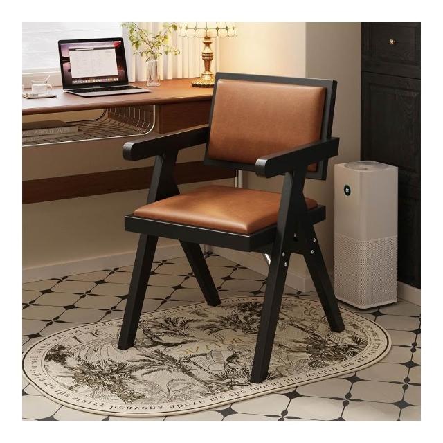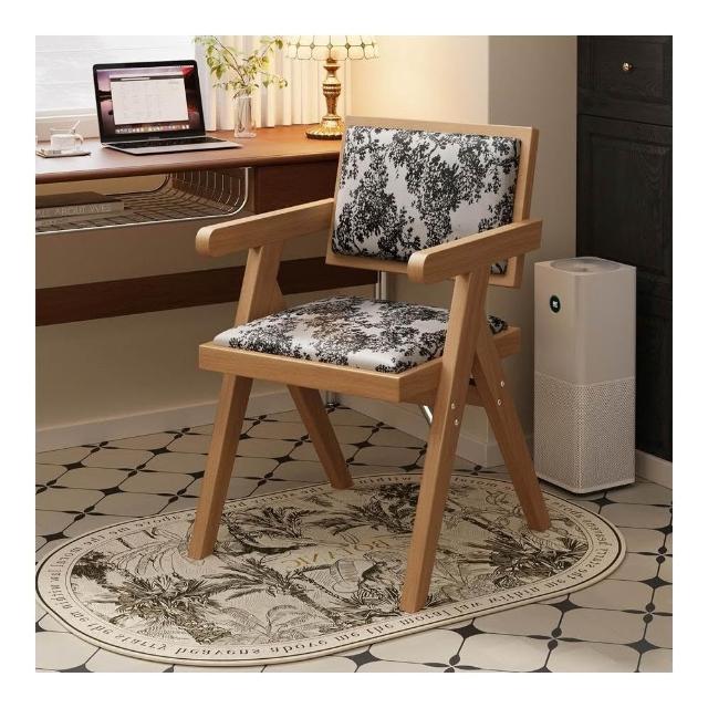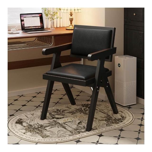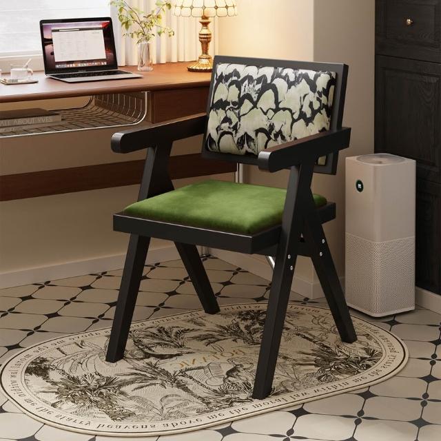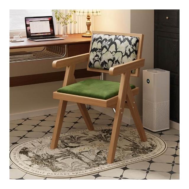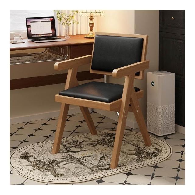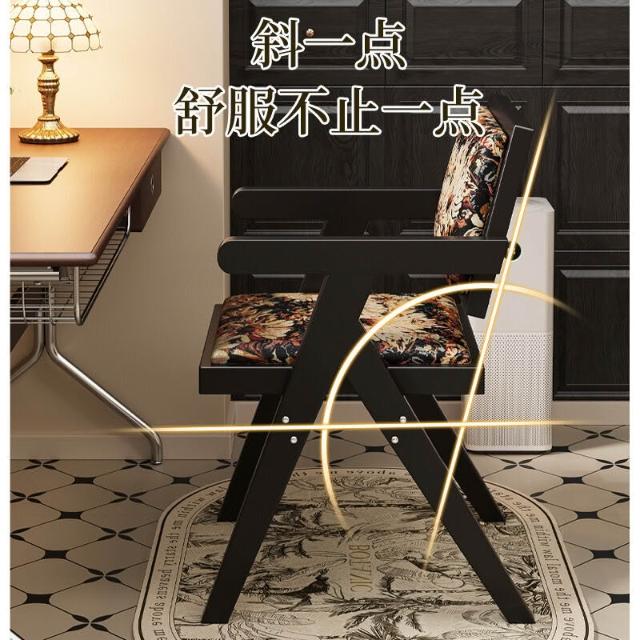 中古仿實木餐椅侘寂風家用餐桌椅子昌迪加爾凳子靠背復古扶手椅子