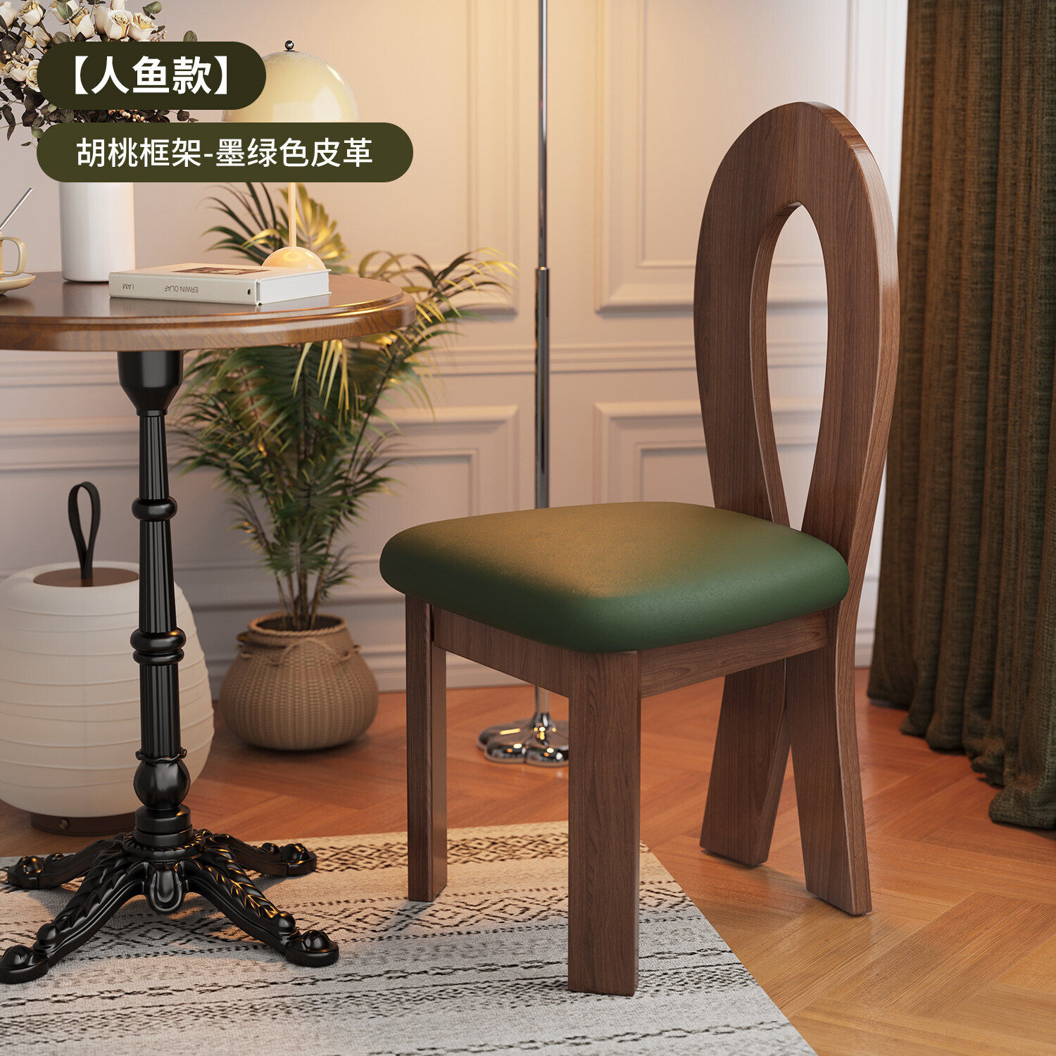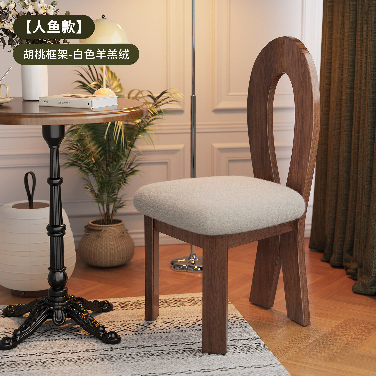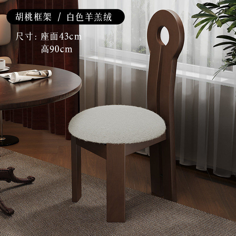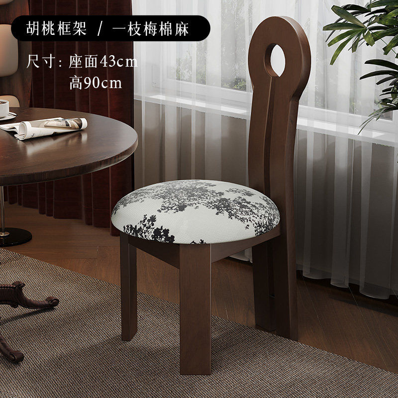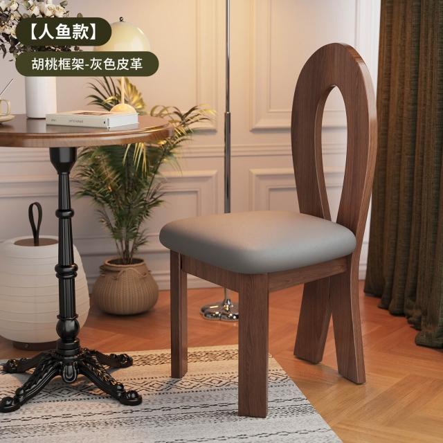 法式復古實木餐椅家用設計師中古靠背椅子侘寂風臥室化妝椅鑰匙椅
