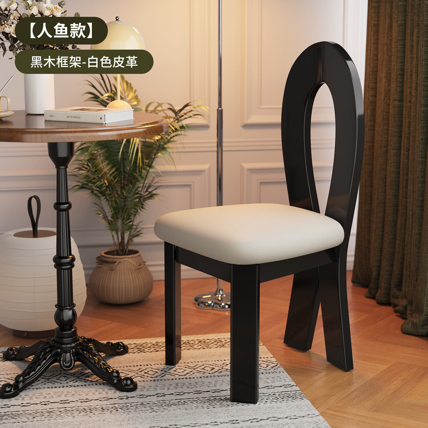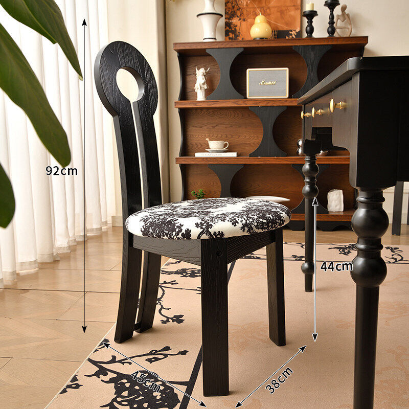 法式復古實木餐椅家用設計師中古靠背椅子侘寂風臥室化妝椅鑰匙椅