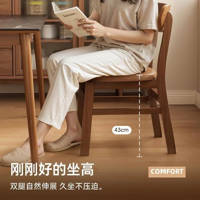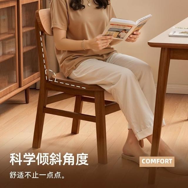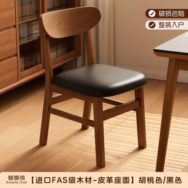 實木餐椅家用小戶型不占地方椅子餐廳吃飯凳胡桃色簡約現代餐桌椅