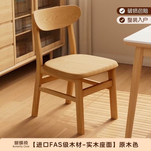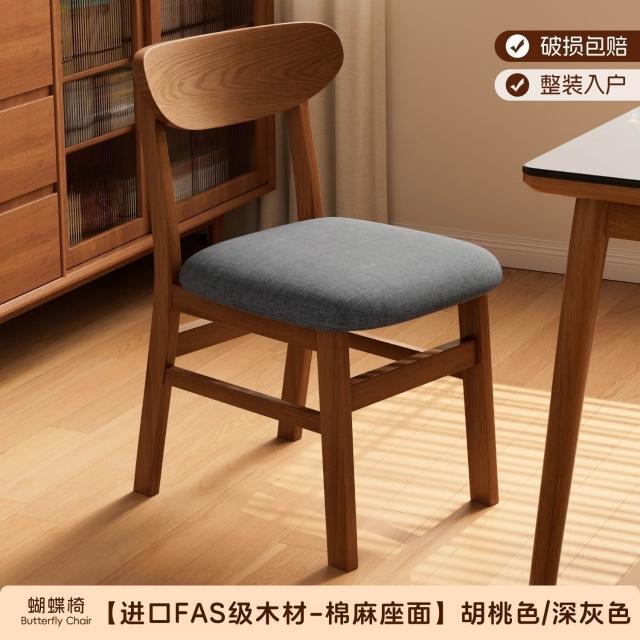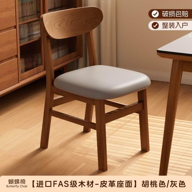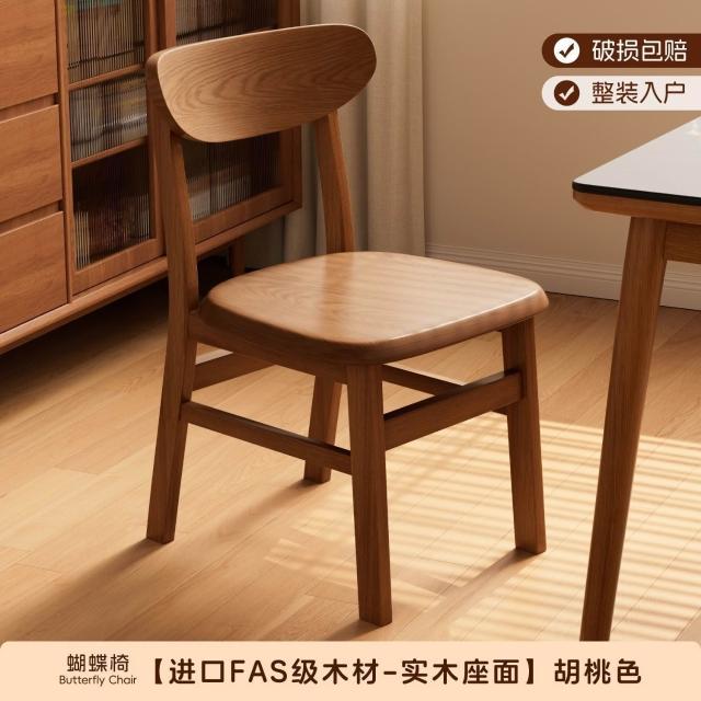 實木餐椅家用小戶型不占地方椅子餐廳吃飯凳胡桃色簡約現代餐桌椅