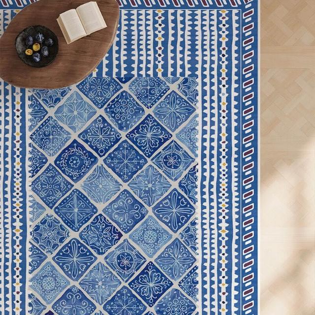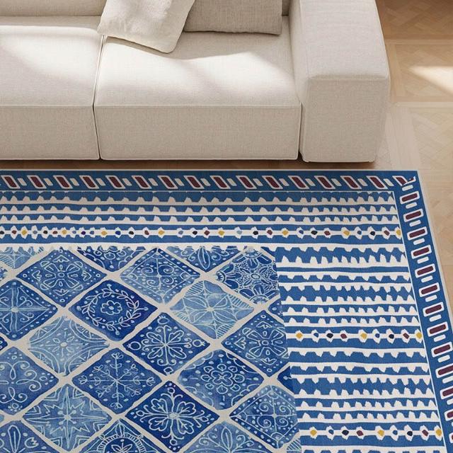 北歐客廳條紋地毯比利時圈絨地墊家用耐磨進門腳墊復古高級茶幾毯