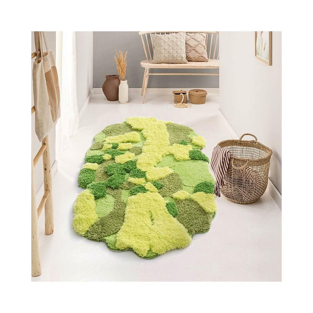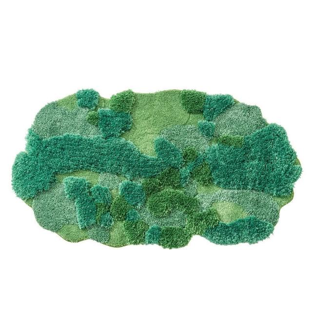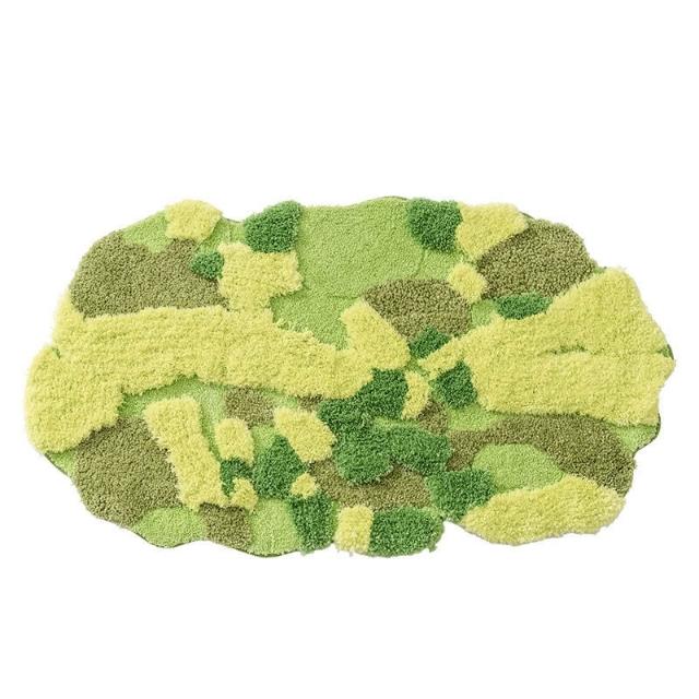 森系植絨地毯臥室苔藓耐臟耐磨地毯不規則加厚隔涼簇絨床邊防滑毯