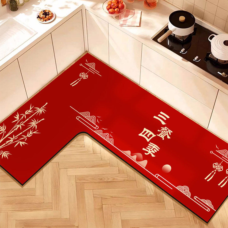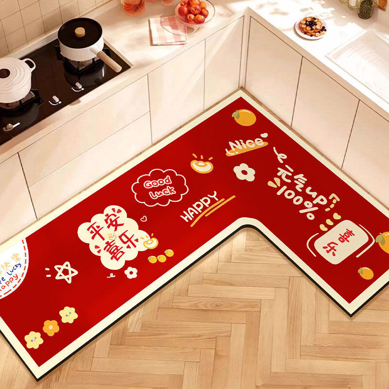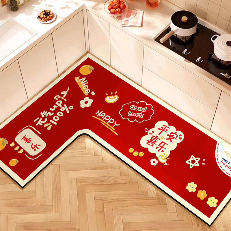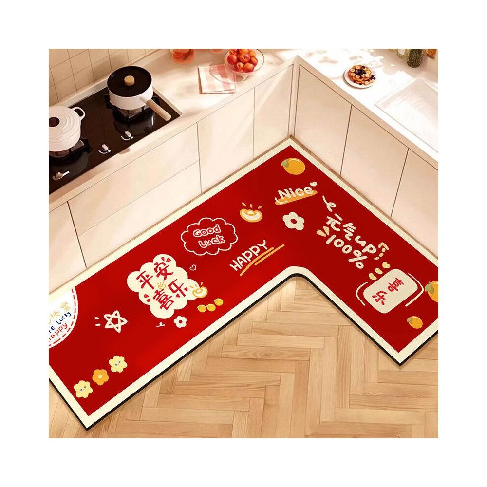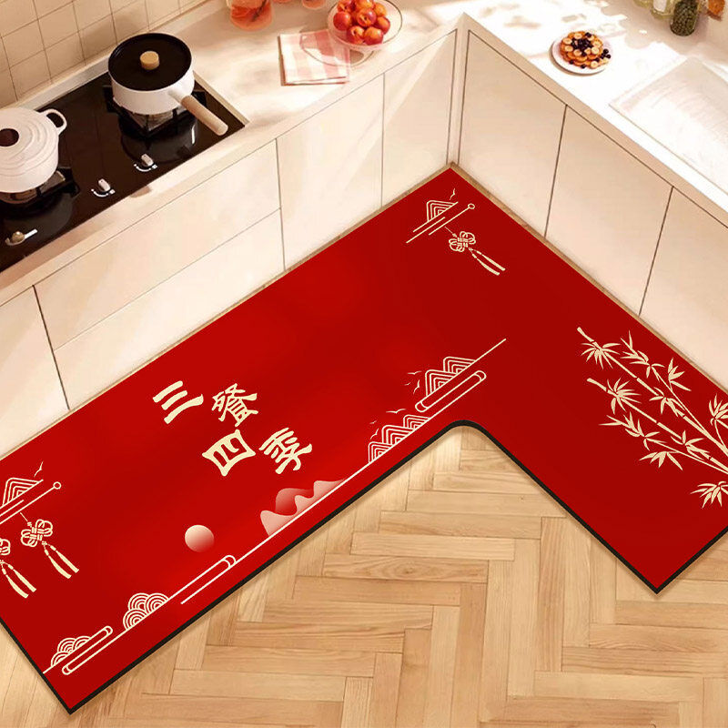 L形廚房地墊吸水吸油防滑免擦可洗腳墊防摔裁剪紅色地毯喜慶新年