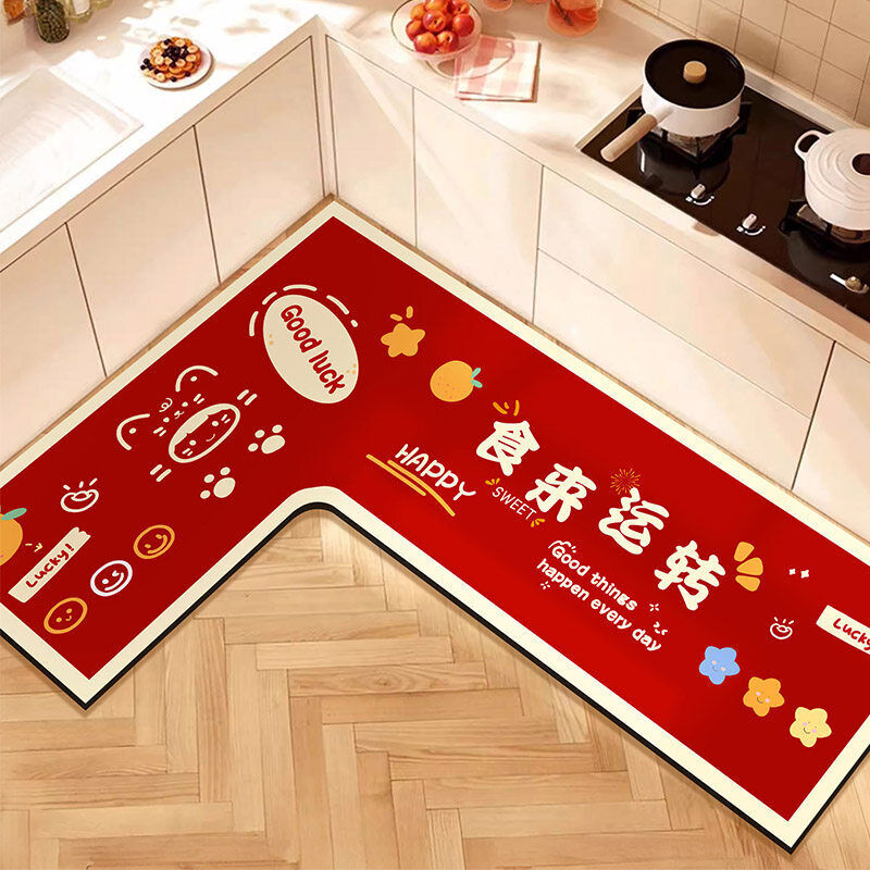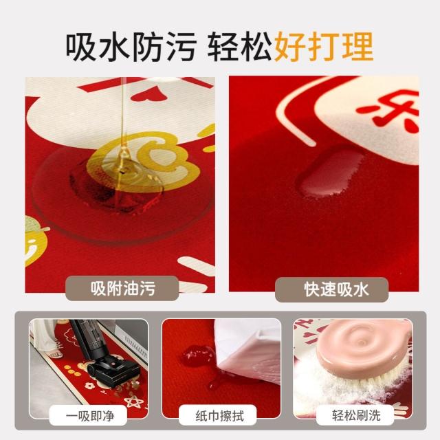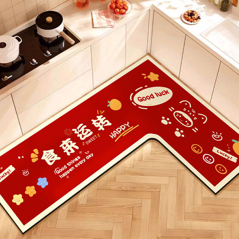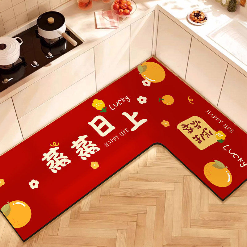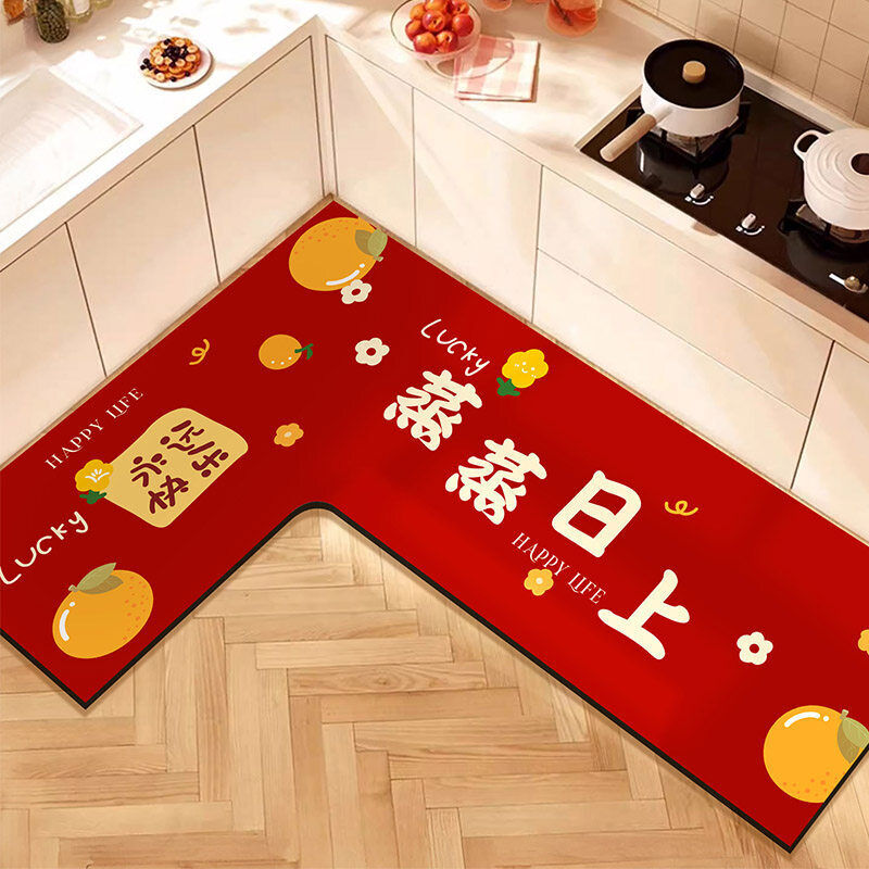 L形廚房地墊吸水吸油防滑免擦可洗腳墊防摔裁剪紅色地毯喜慶新年