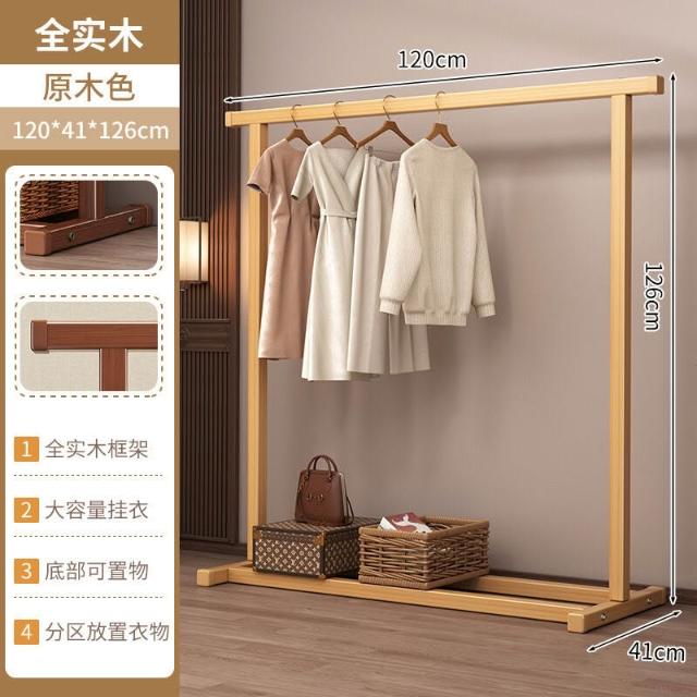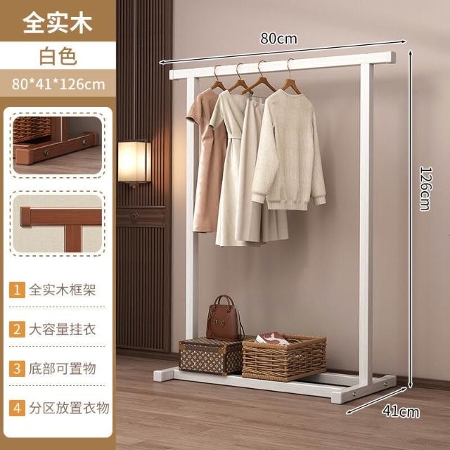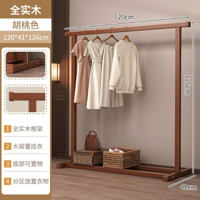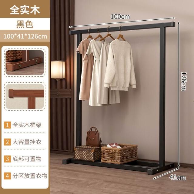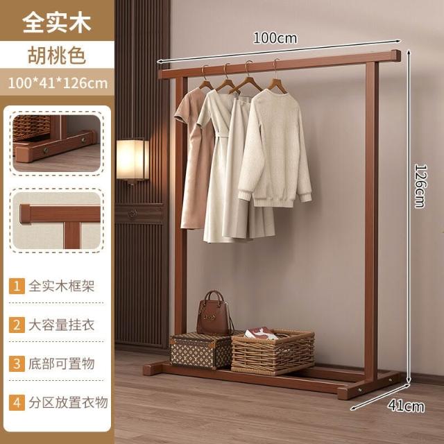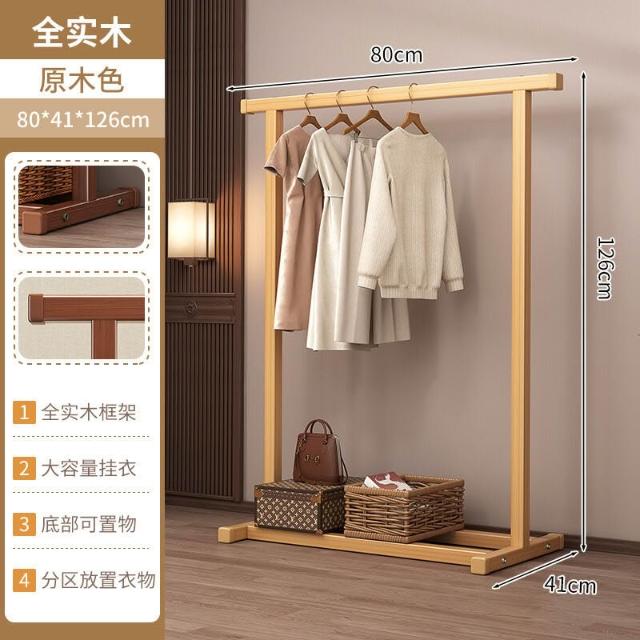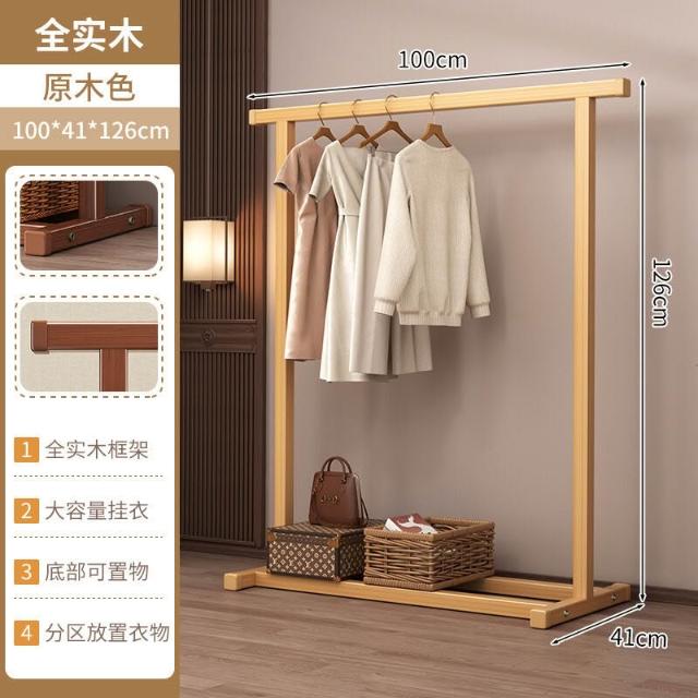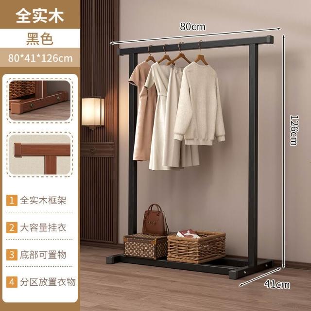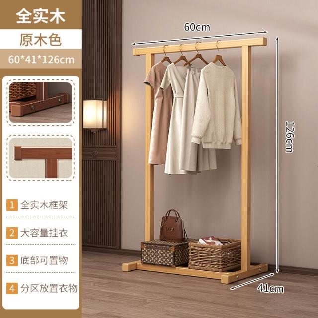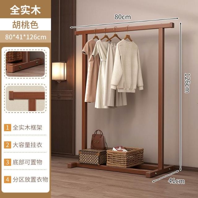 家用落地掛衣架多功能臥室房間木質晾衣服架子新中式實木衣帽架