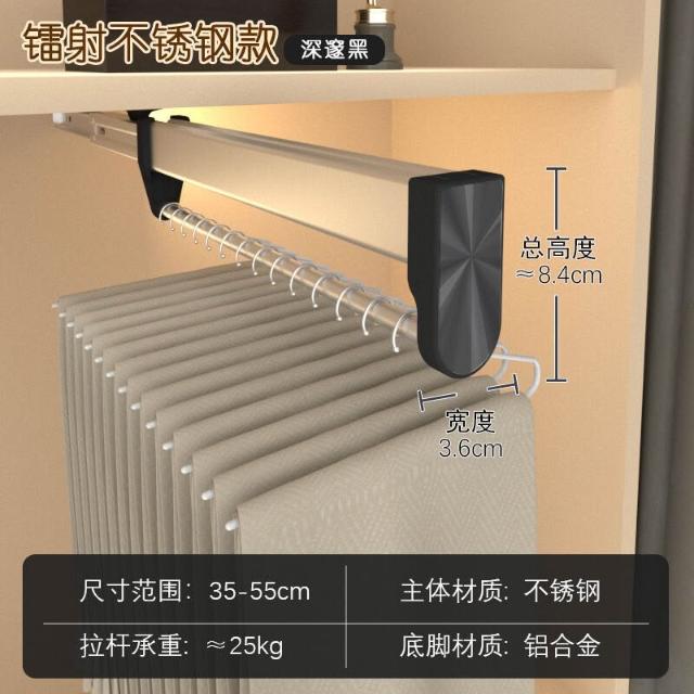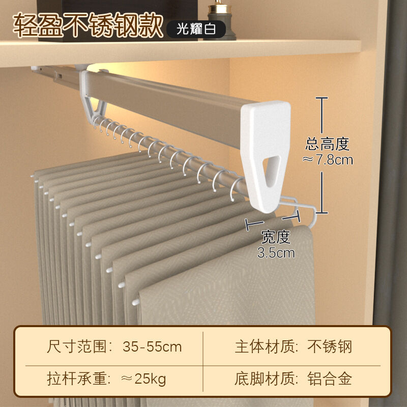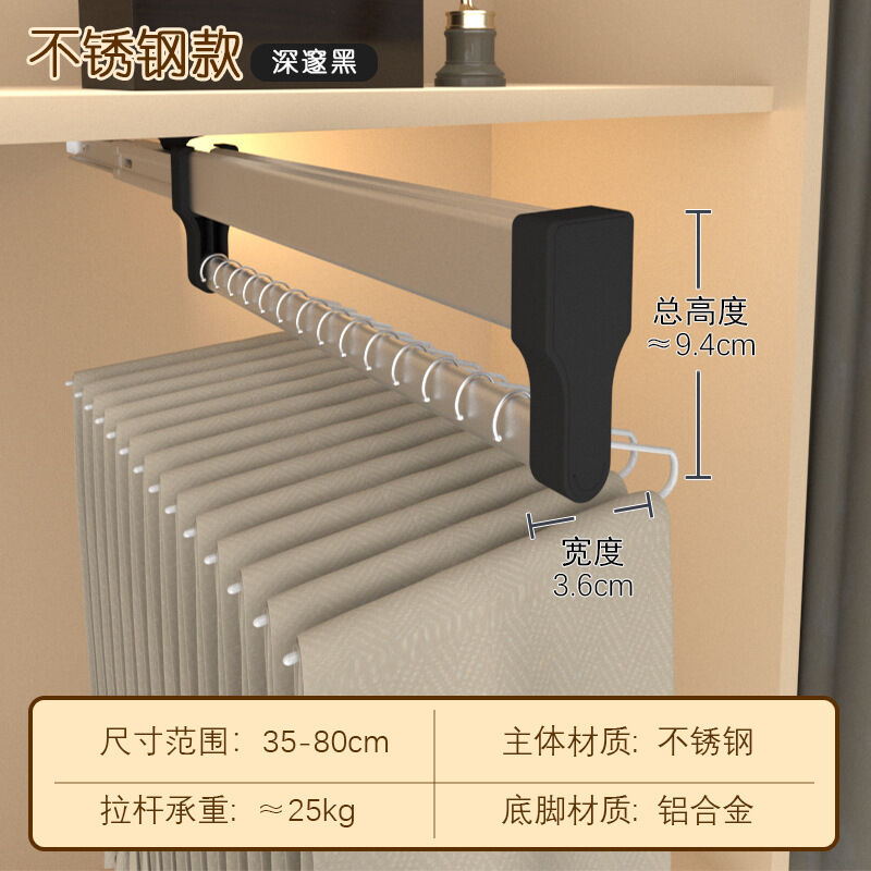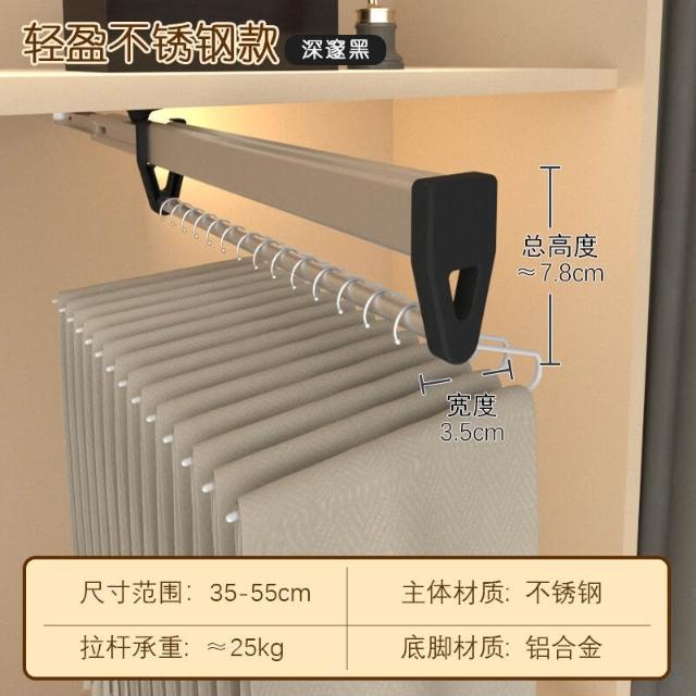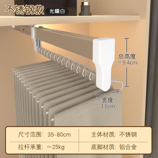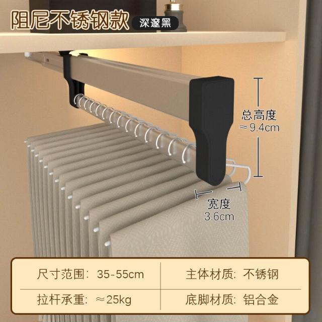 抽拉褲架頂裝伸縮褲抽拉拉宜居衣帽間不銹鋼滑軌推拉掛褲子掛衣桿