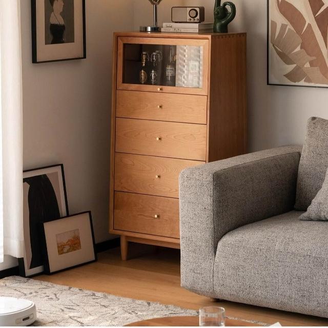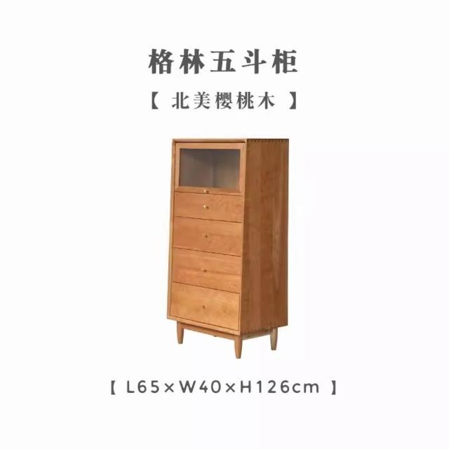 臥室實木家具格林五鬥櫃 客廳臥室收納櫃 簡約現代櫻桃木抽屜櫃子