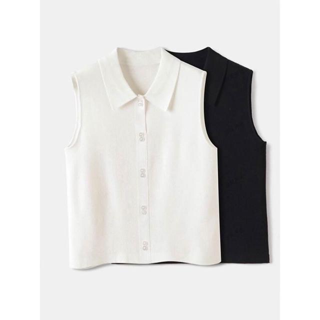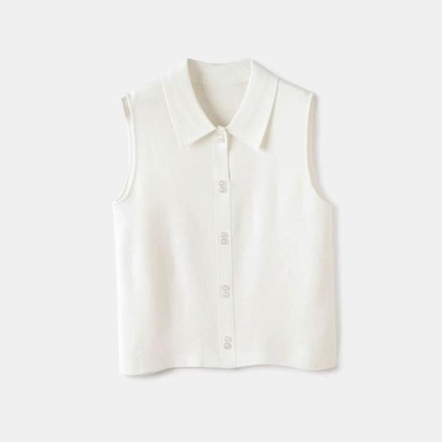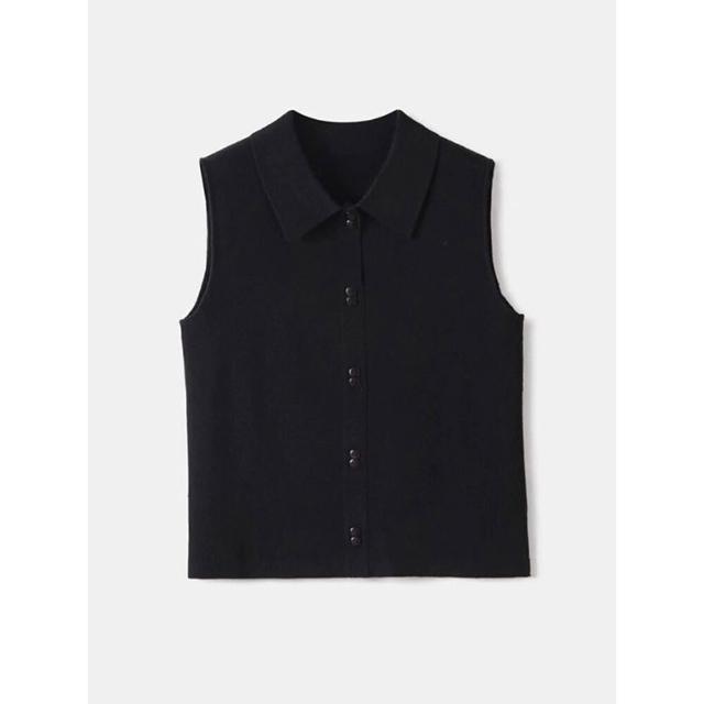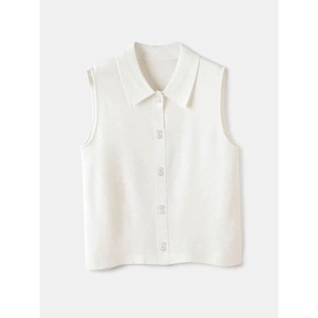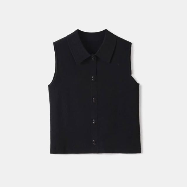 襯衫領針織背心女美利奴羊毛無袖打底衫馬甲翻領疊穿內搭無袖襯衫