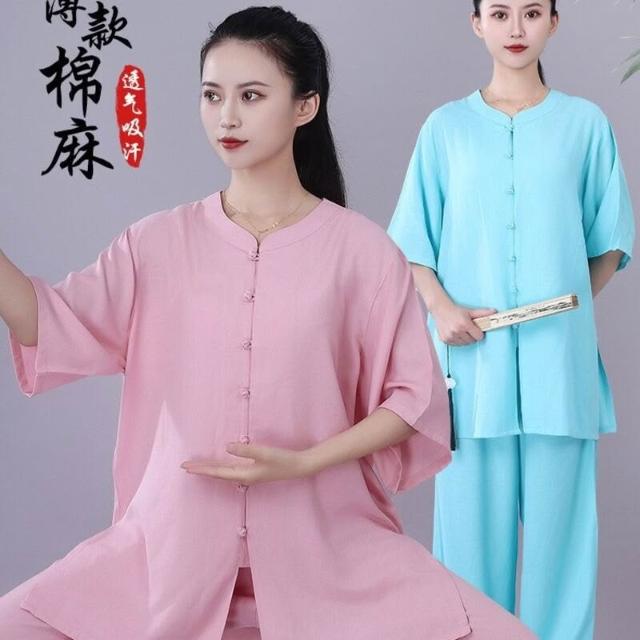 新款夏薄棉麻太極服女短袖太極拳練功武術晨練比賽演出服八段錦男