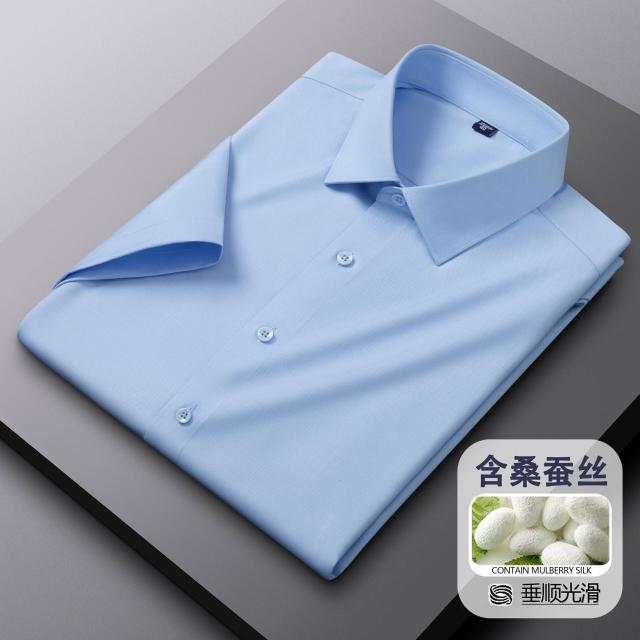 含桑蠶絲+莫代爾短袖白襯衫男士夏季商務職業裝伴郎半袖襯衣寸衫